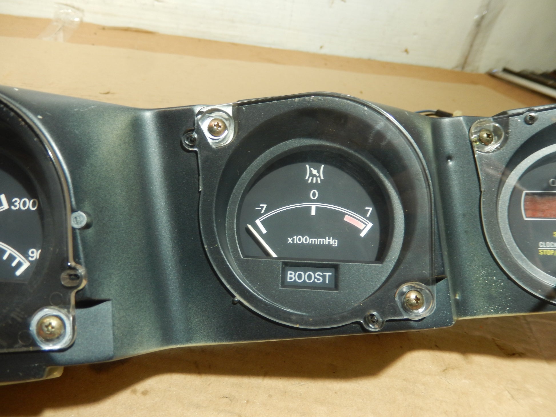 1982 Datsun 280ZX Turbo Three Gauge Instrument Cluster includes Quartz Clock, Oil Temperature + Pressure, and Turbo Boost Gauge. Very Clean, No Damages. Excellent Condition All Around. Brilliant Circuitry and Print Board. Guaranteed.