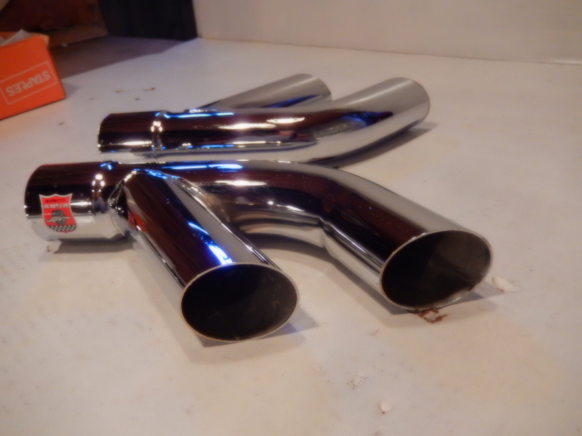 ANSA OEM Vintage Pair of Twin Side Pipe Exhaust Tips In NOS Condition. These are ANSA Typo TK7000 Side Pipe Twin Exhaust Tips. These are straight through tips ! in the tradition of Vintage ANSA they are heavily built with brilliant , deep chrome and heavy steel body. These are the most rare of all ANSA Tips.