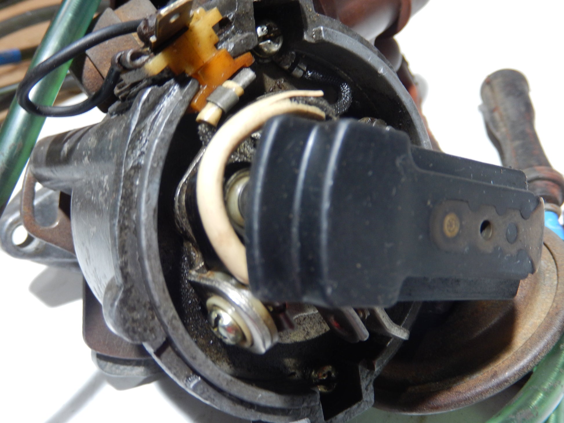 Datsun 240Z Distributor Assembly in Complete and Very Good Used Condition. All the Elements are clean and solid, no damages or excessive wear. A Complete Assembly including = The Main Distributor Body, The Cap, The Rotor, The Points, The Vacuum Pod and a great set of 8MM NGK Ignition Wires including the Coil Wire. Rare Find. The distributor shaft rotates smoothly and perfectly. This assembly needs just a simple and light cleaning up, not much more. The vacuum pod needs paint. It was tested and the diaphragm is fully intact. A Rare Find! SKU # 958 Guaranteed