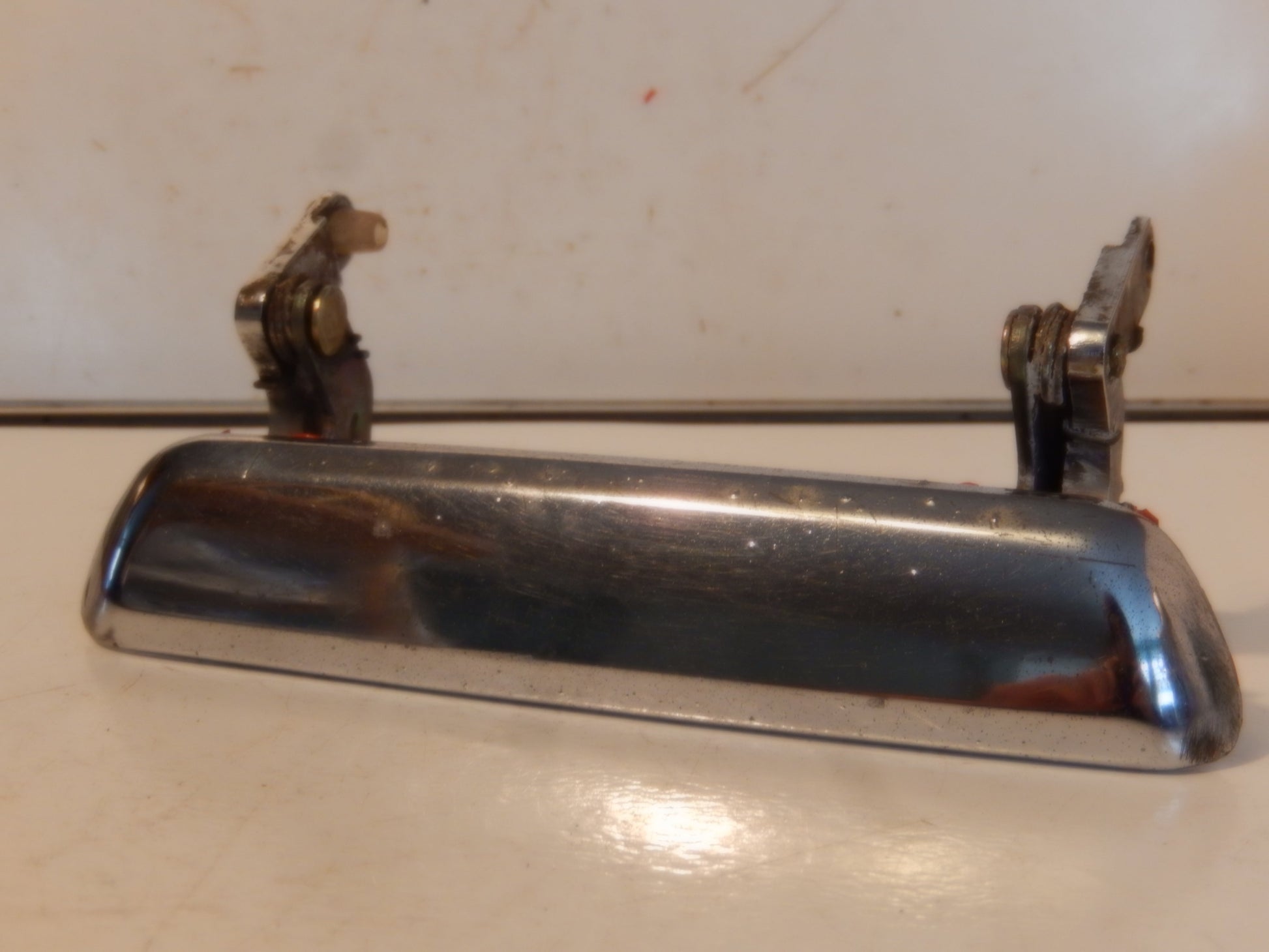 Datsun 240Z Drivers Side Exterior Door Handle Has Very Minor Chrome Surface Raises/Scratches, but Clean. Two Digs in one Corner of Handle (see photos). Guaranteed.