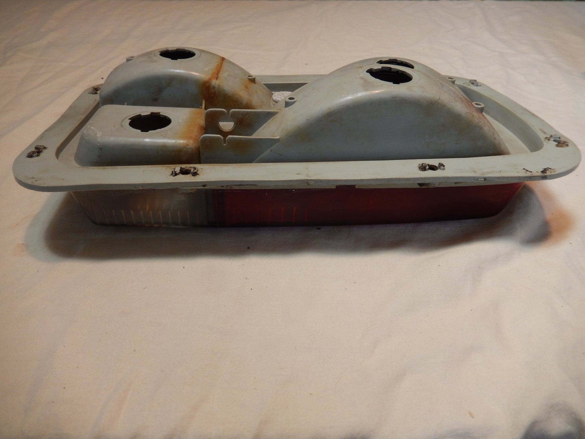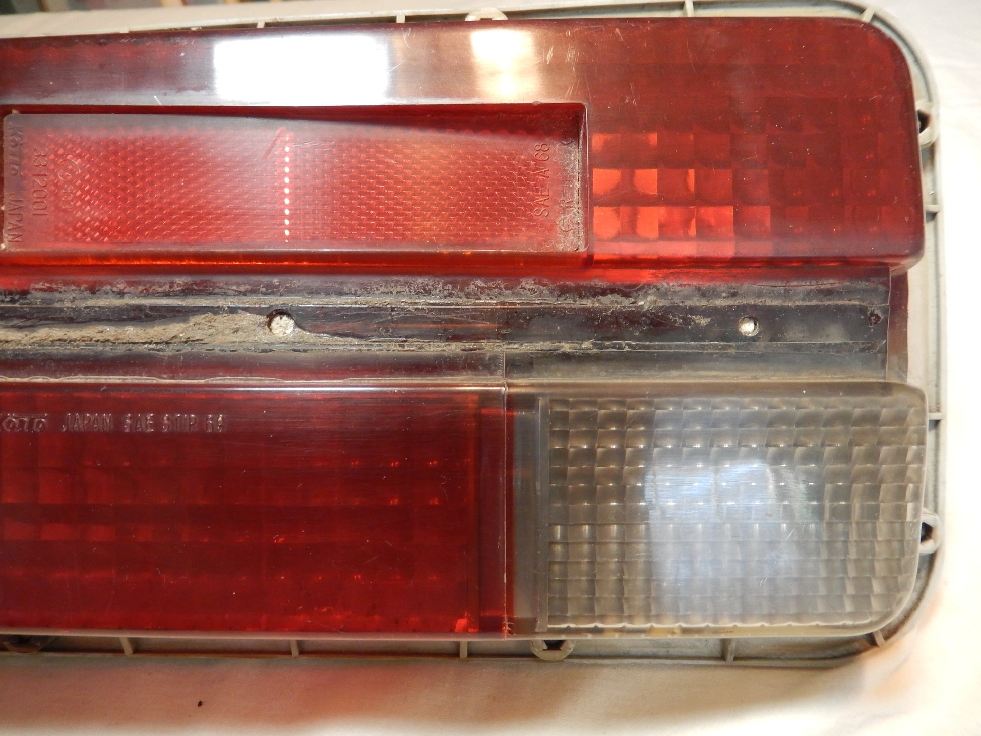 Datsun 240Z Driver's Side Tail Light in Excellent Used Condition. Back Up Light and Lower Red Tail Light. No Cracks, Hairlines, or Warps. Nice Color Lenses. Perfect Back Body. Center Trim Bar is Gone. No Broken Off Studs. Good Mount Threads. Guaranteed. SKU# 22320.