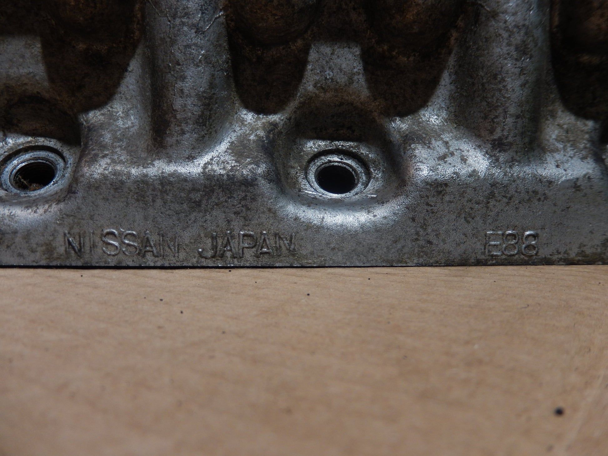 Datsun 240Z E88 Engine Head with E30 Racing Cam was installed on Series One Racecar that had special racing equipment; transmission, rear differential, driveshaft and engine. Engine has racing pistons with valve indents. We're not sure about crank shaft. Racing Cam is marked in red (see photos) at the factory. Head is complete including cam chain gear and water jacket. This is a good used head, we see no damages or excessive wear. Valve train moves freely when spun. Head surface looks very clean without scratches or dings. Valves look like they need cleaning inside but all of them look to be in good condition. Guaranteed.