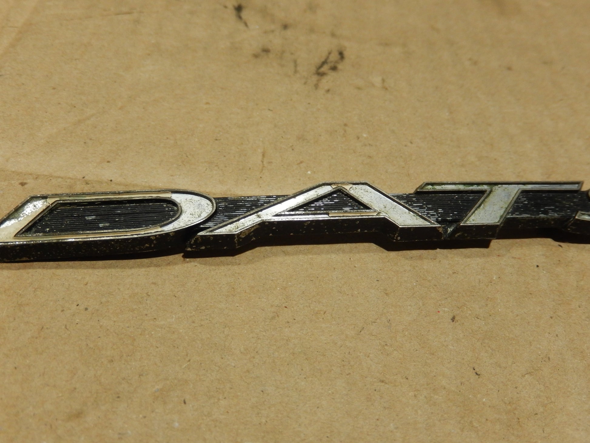 Datsun 240Z Front Fender Script in Excellent Used Condition. Good Paint. 1 Pin Intact. Nice Script. Guaranteed. SKU # 9