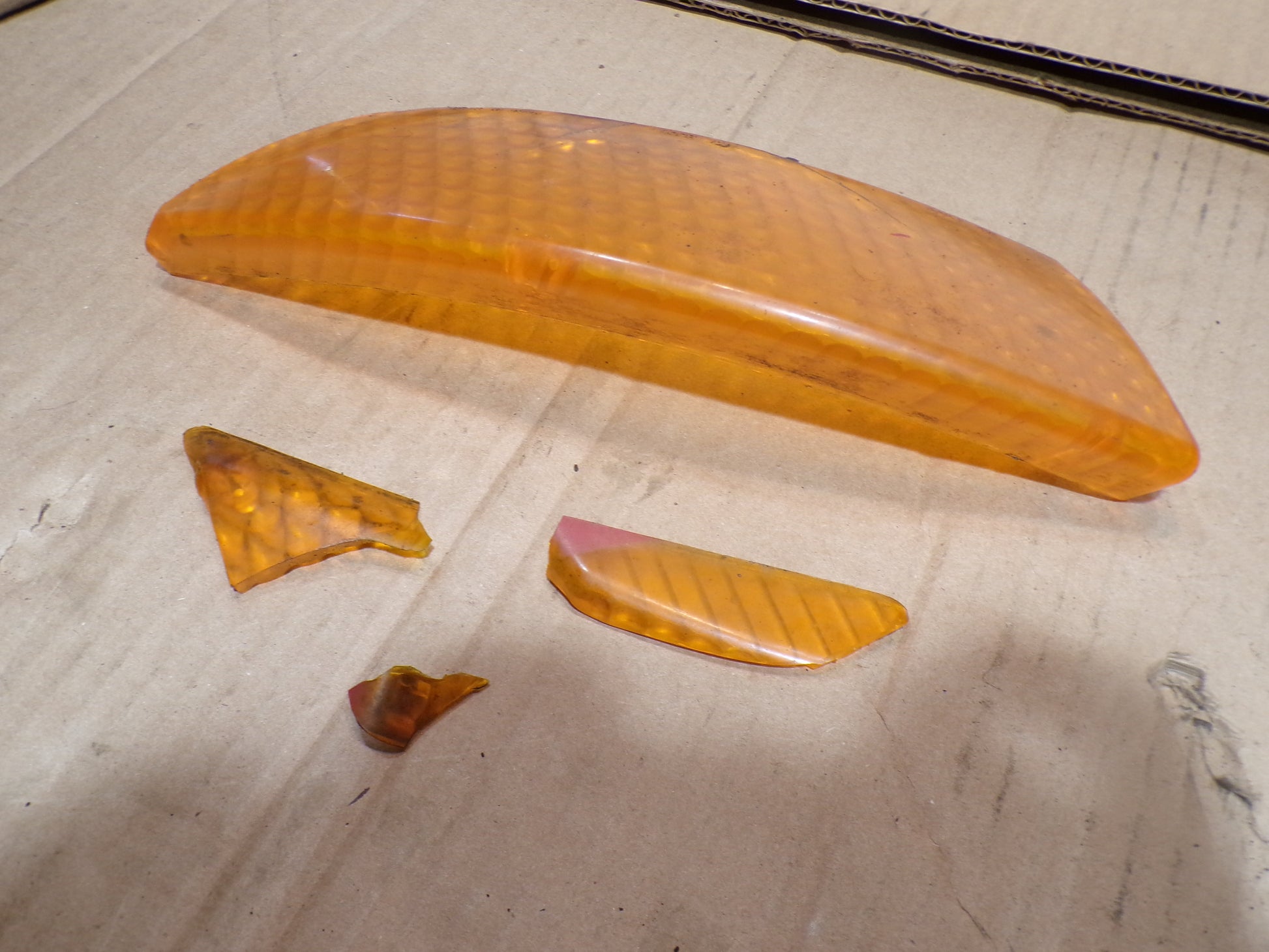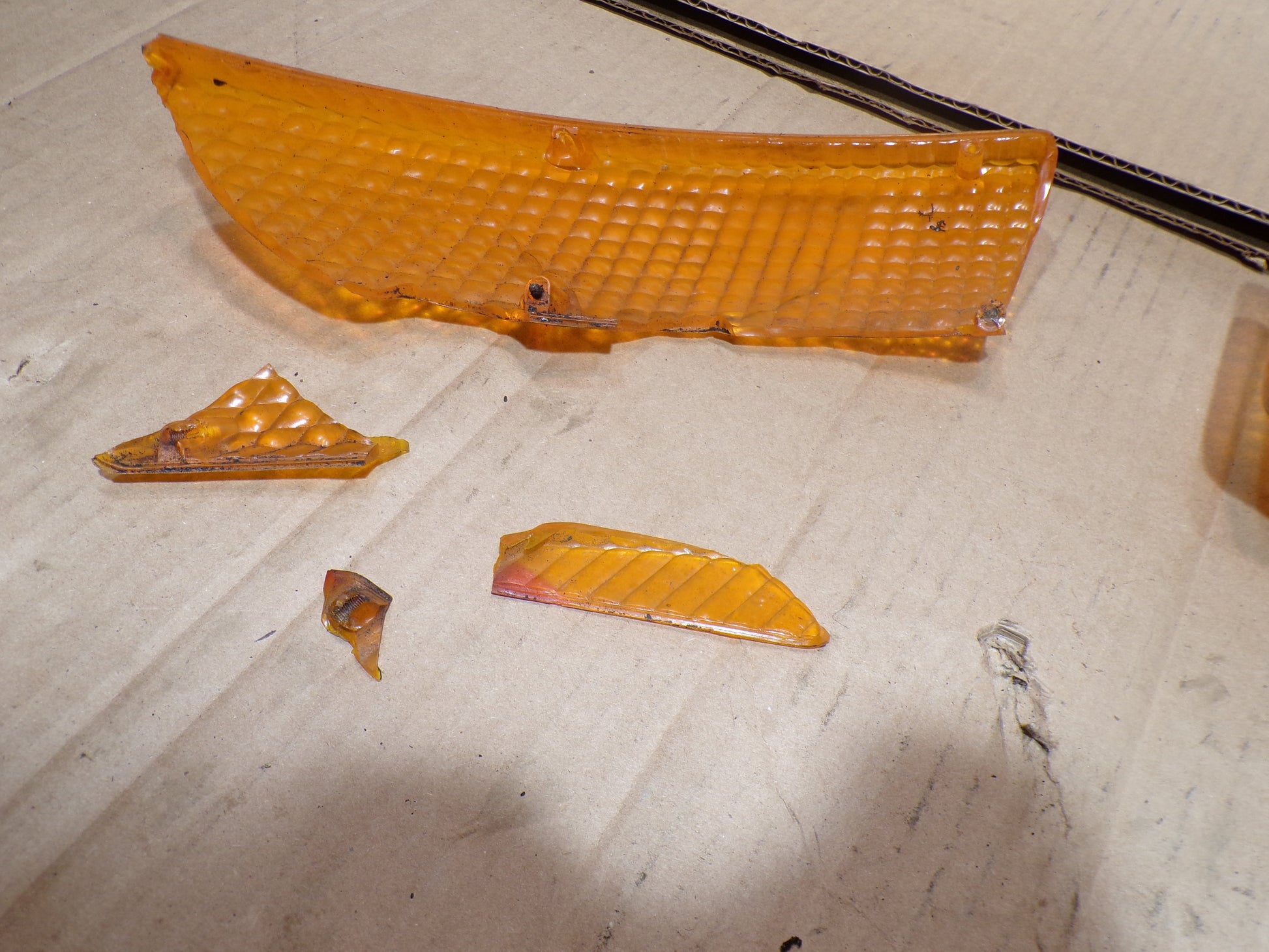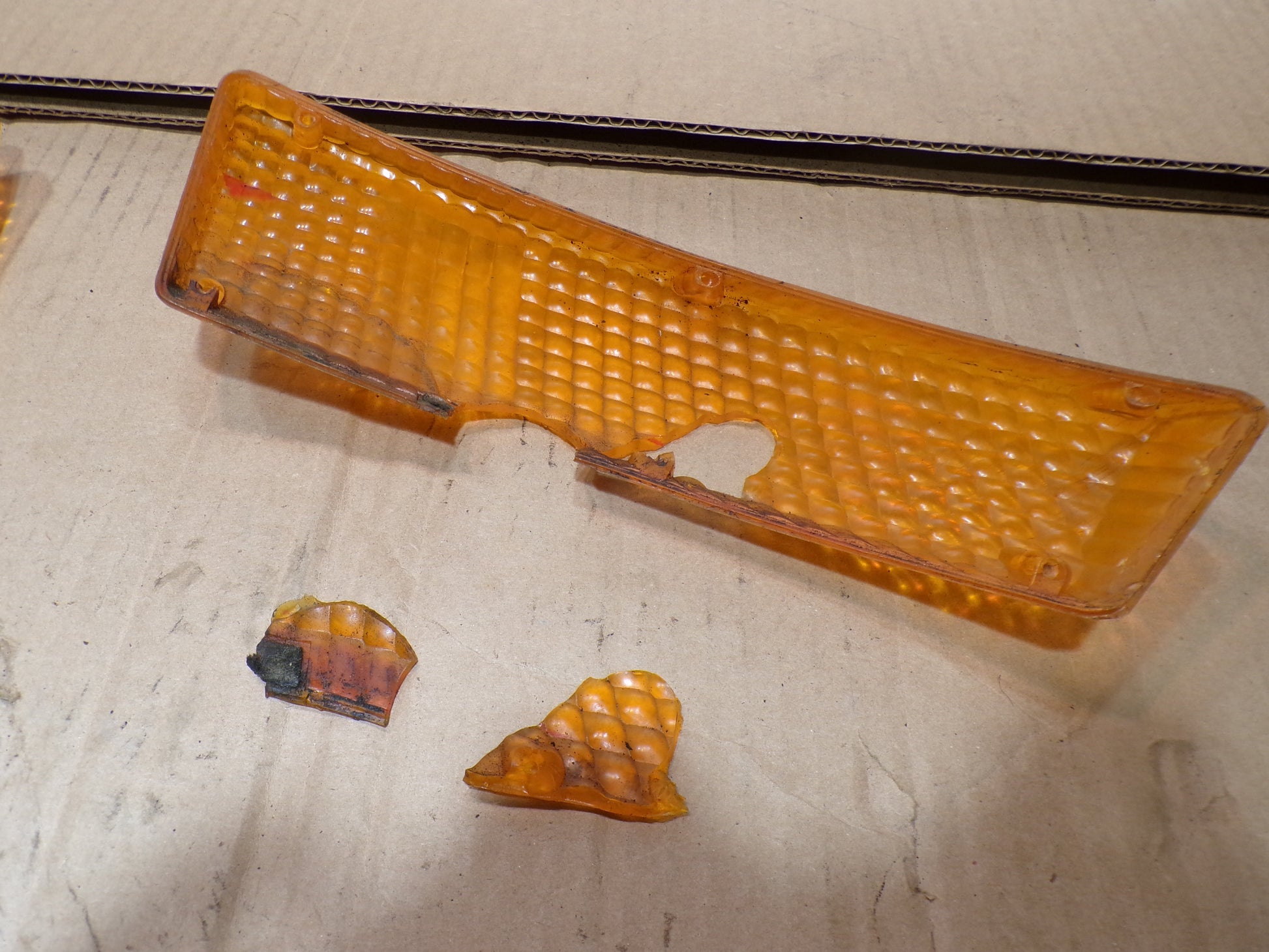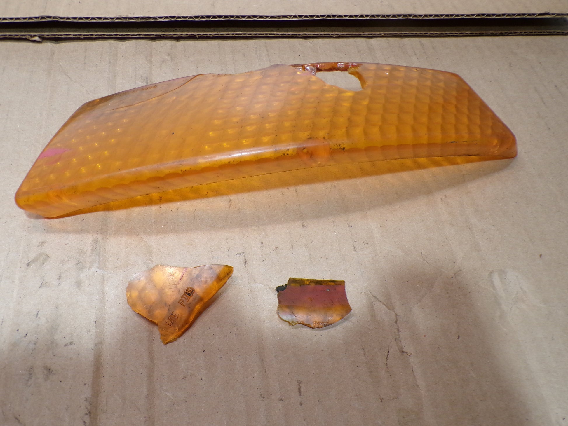 Datsun 240Z Front Turn Signal Lenses are all in broken pieces. Parts Only - No Returns. No Guarantees.