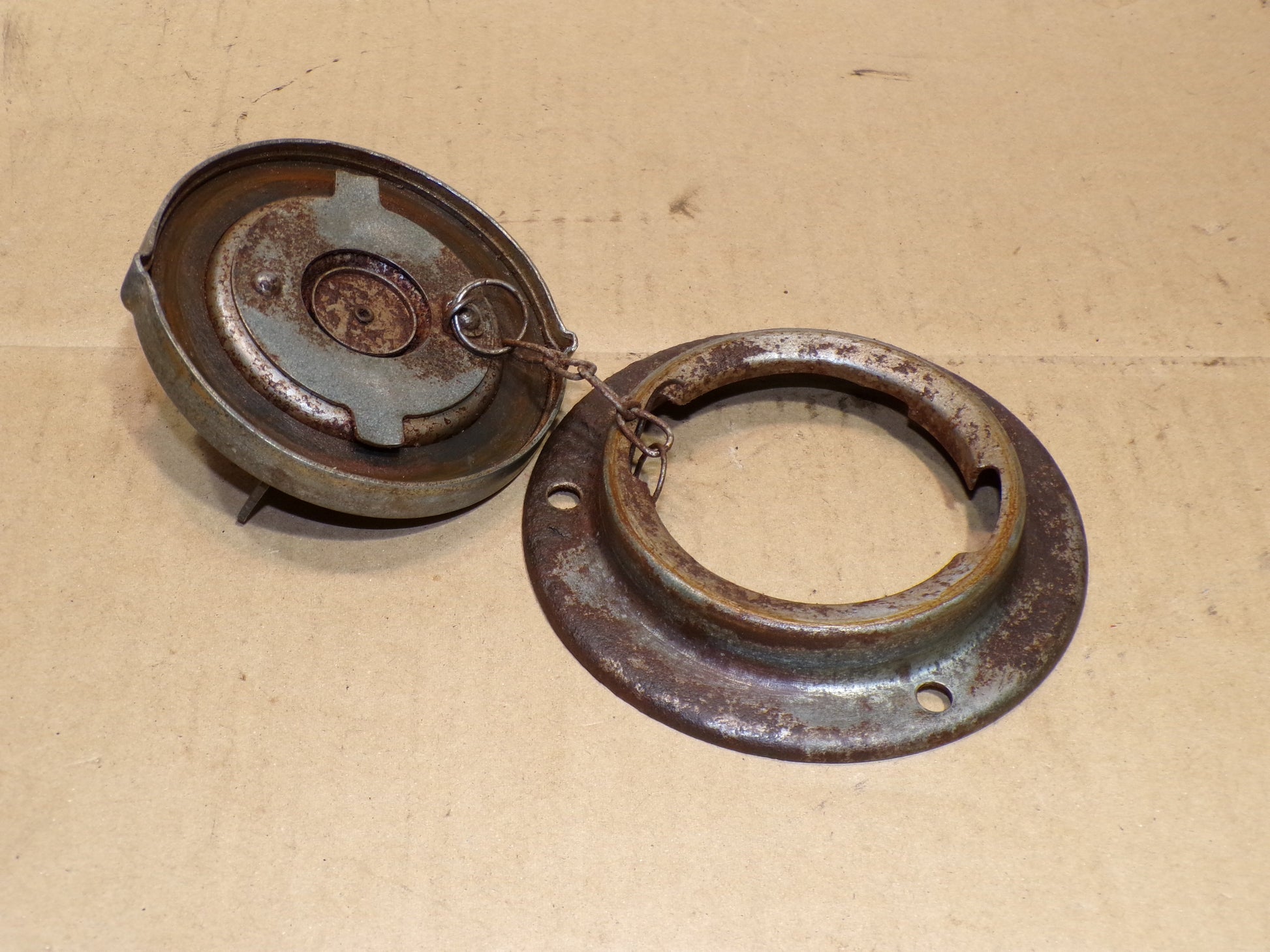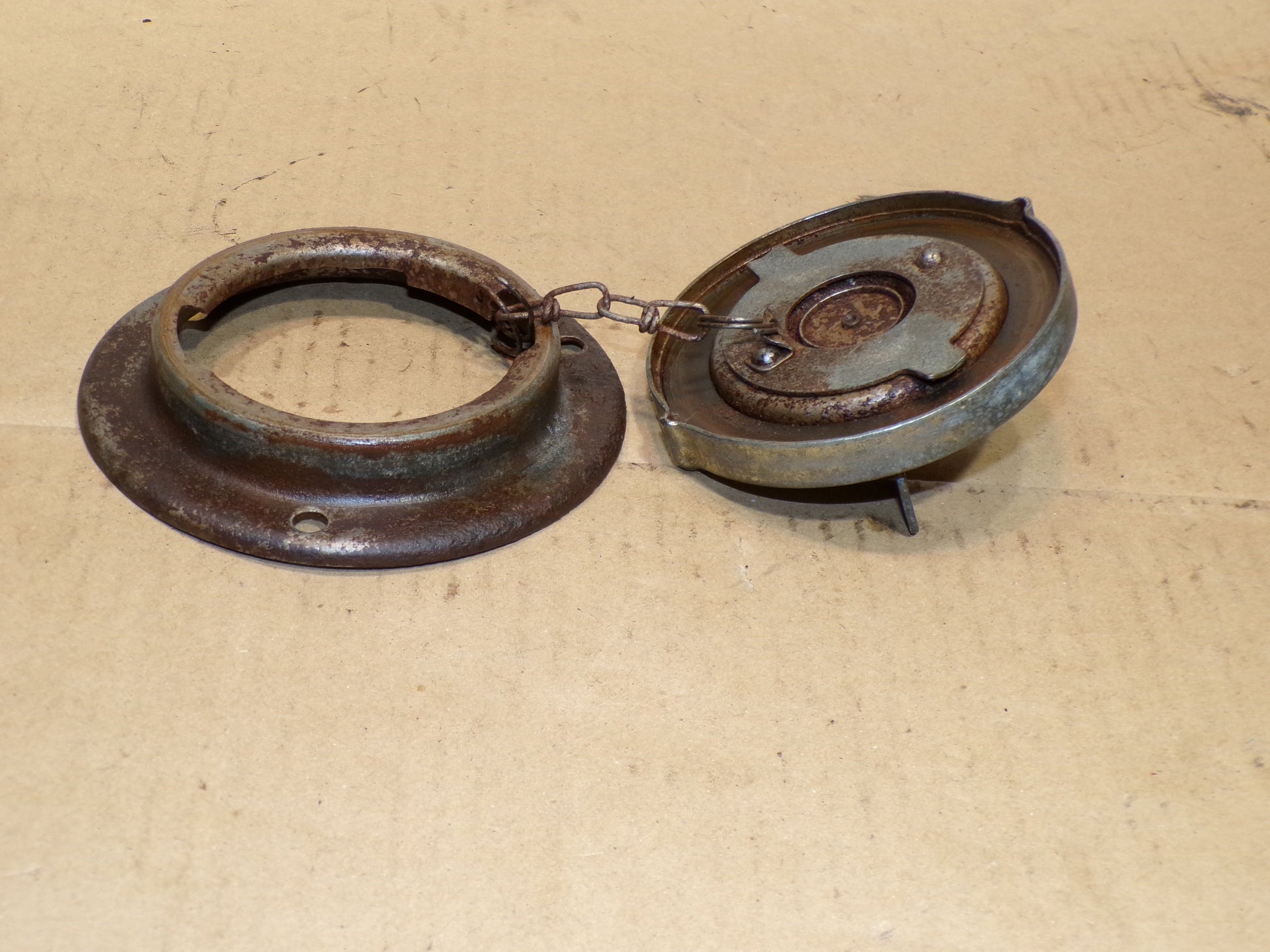 Datsun 240Z Gas Cap, Filler Neck Head and Cover/Seal will Clean Up Very Well. Flap is for Restoration or Pattern. Cap is in Excellent Used, Solid Condition. Chain is Intact. Cap Seal Still Good. Guaranteed.