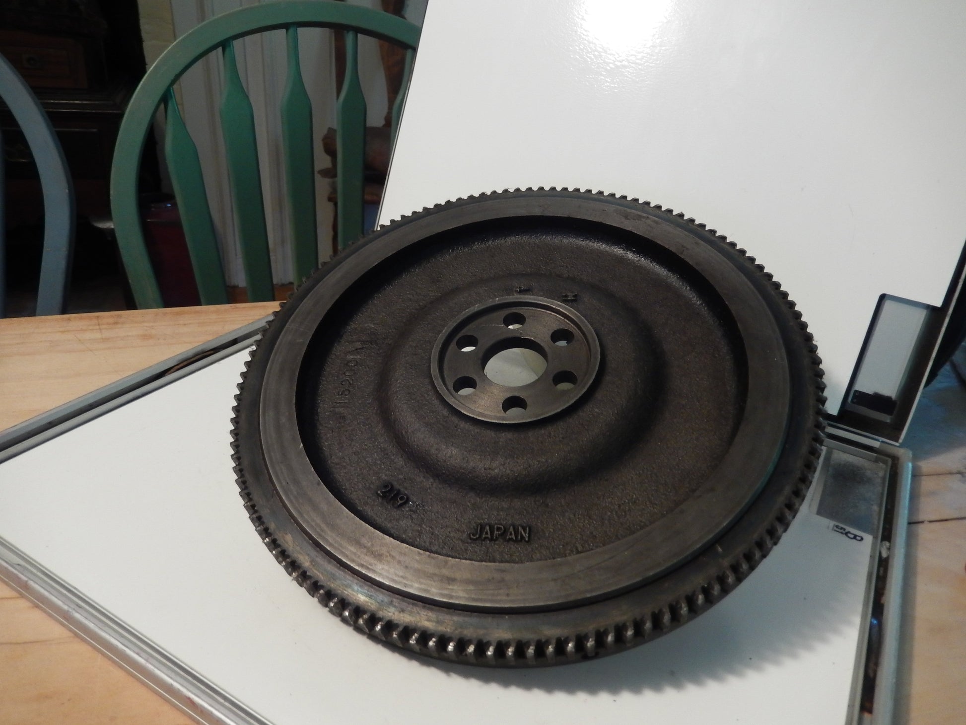 Datsun 240Z NOS Engine Flywheel in Exceptionally Fine Condition. This is a Very Clean Flywheel Assembly, Basically it is New, Hardly Used at all with Very, Very Minimal Wear on the Faces. The Machining Marks are still intact. Clean and Stored Properly. Please Note. When being installed the Starter was mis-aligned. So there is an area on the Starter Teeth Machining that is a little chewed up. This can be fixed easily with about thirty minutes time and a clean up file. Guaranteed.