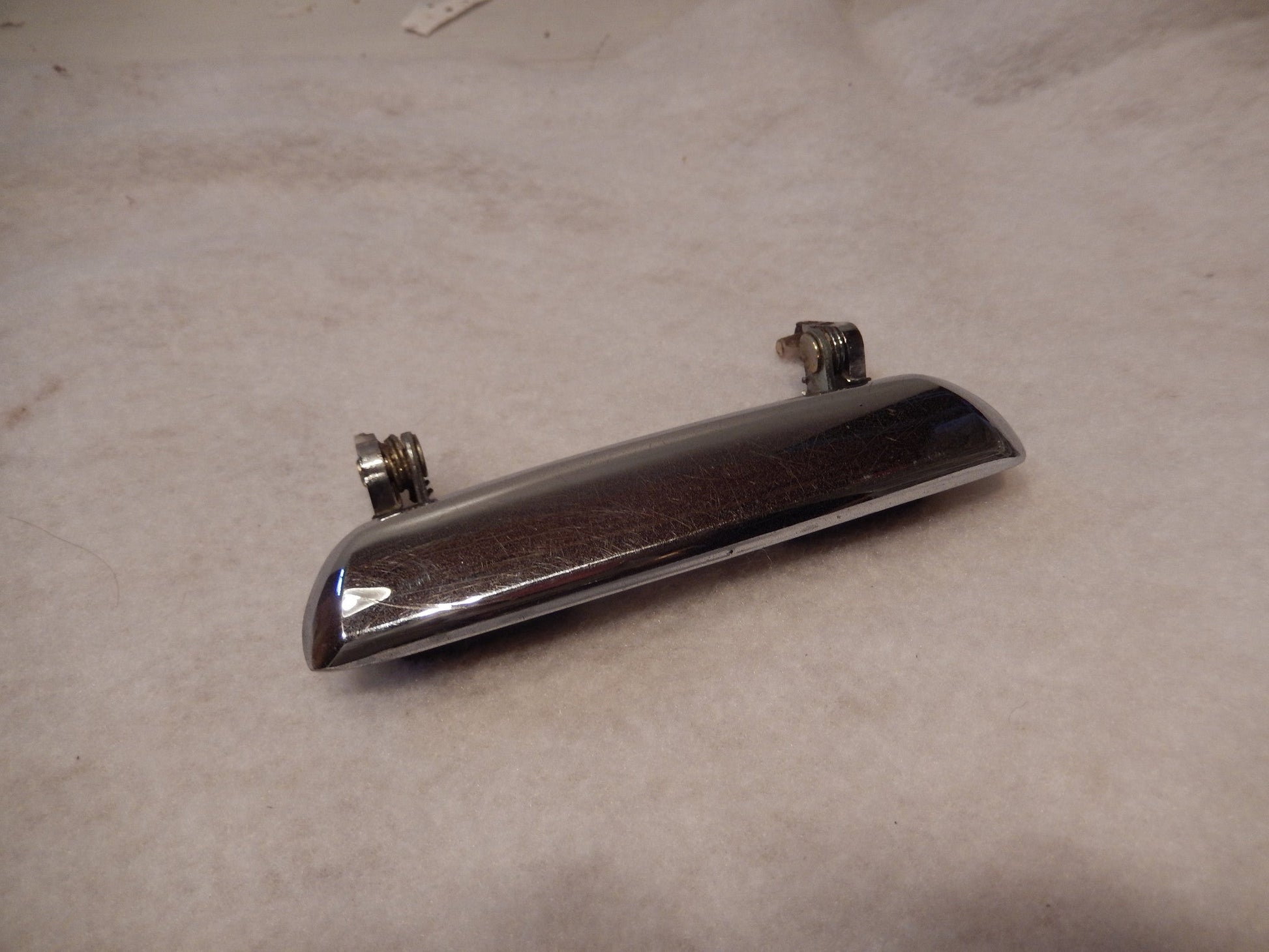 Datsun 240Z OEM Drivers Exterior Door Handle in Very Fine / Used Condition. This handle has a very nice lustrous chrome finish and a smooth working lift mechanism. It comes with the mounting plate and fasteners. Any imperfections are extremely minor. Guarranteed , very nice handle.