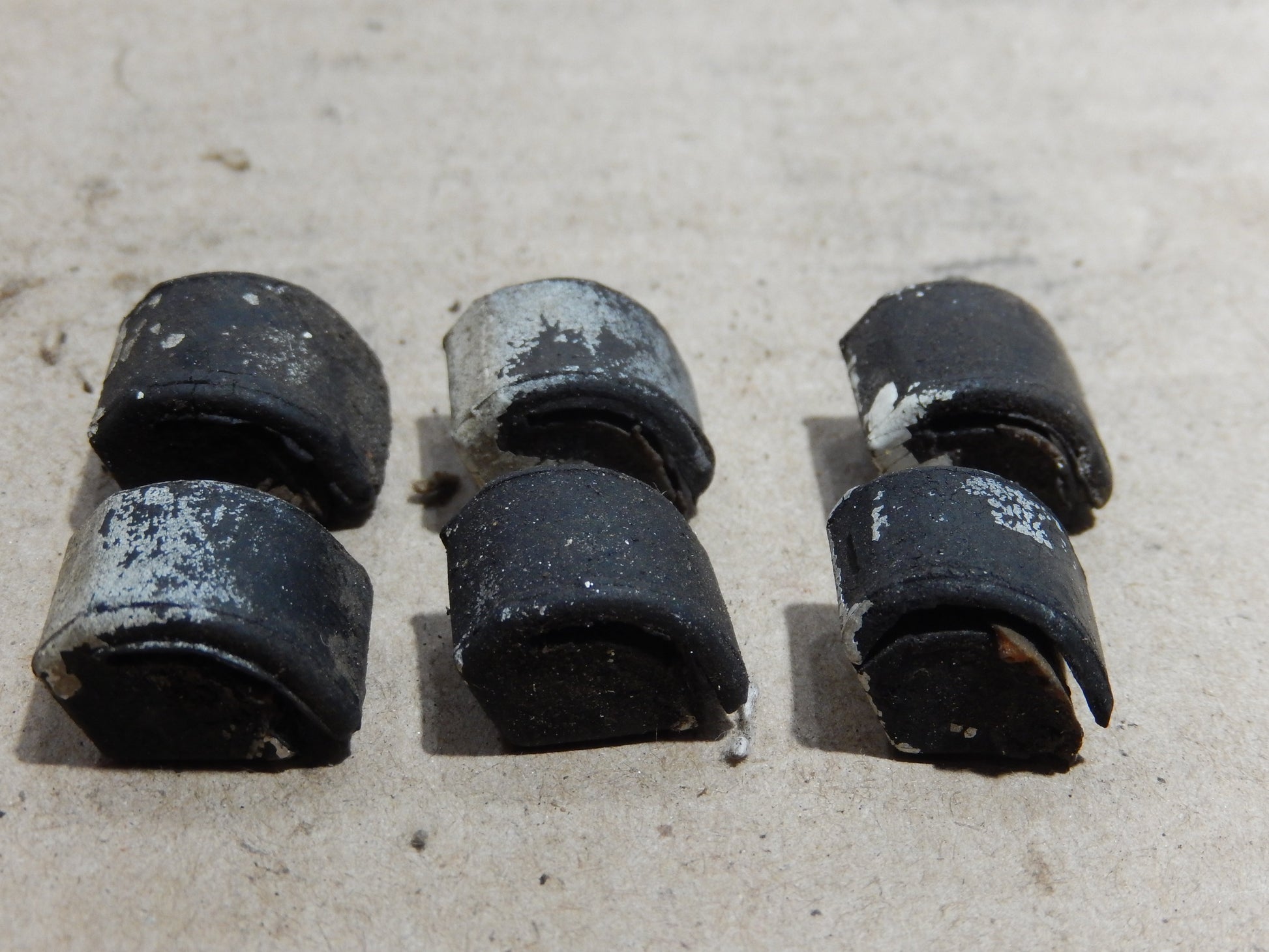 Datsun 240Z OEM Hood Deck Inspection Hatch Lid Rubber Stops. 3 Pieces in good / used condition. Clean and Install. Guaranteed. Three Bumpers.