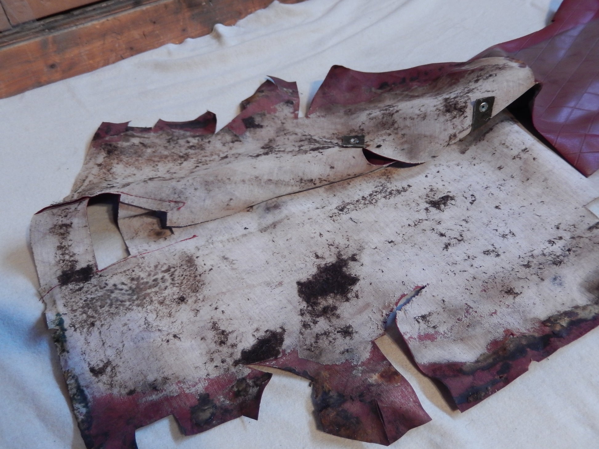 Datsun 240Z OEM RED Tunnel Liner in Good Condition having only very minor imperfections but also having some color fading in areas. Great for Restoration, Patching and Repairs. This Liner is Complete ! No Returns, Please.
