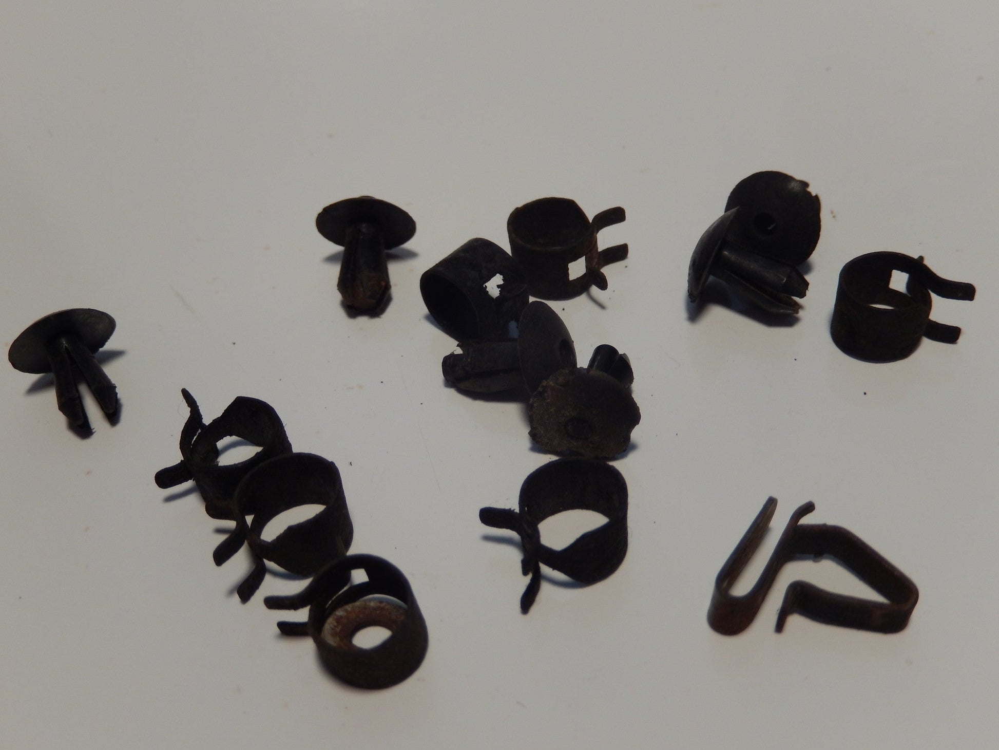 Datsun 240Z OEM Specialty Hose Clamp and Nylon Pins Group in Excellent / Used Condition. Fine Set. 7 Clamps, 4 Pins. Guaranteed