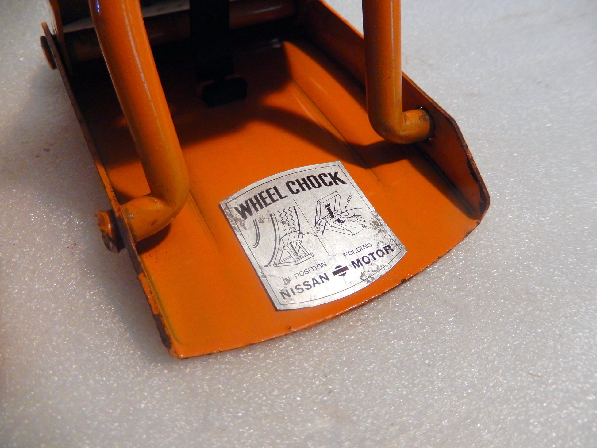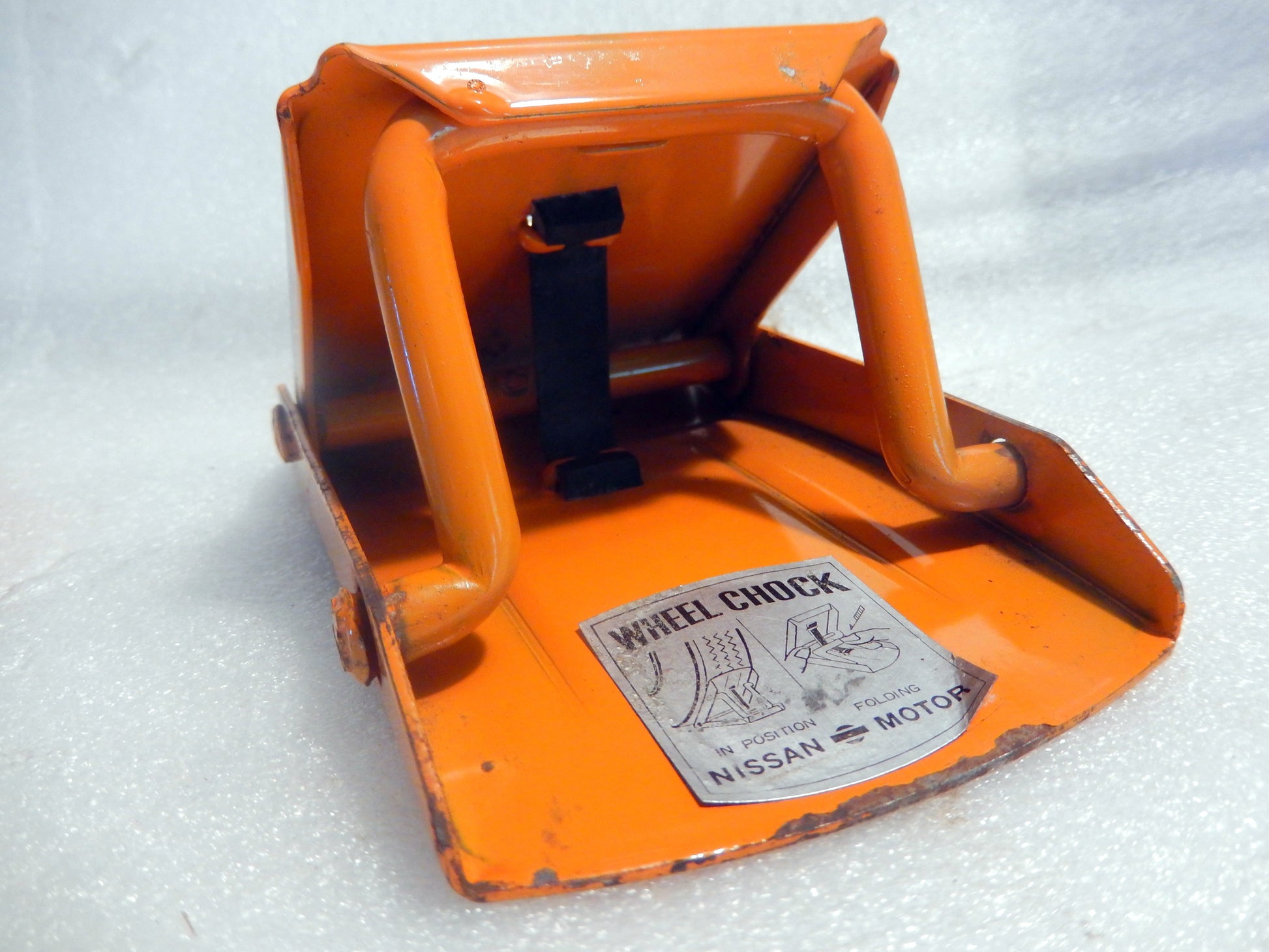 Datsun 240Z OEM Pair of Wheel Chocks. Great, Clean Excellent/ Used Condition. Nissan Wheel Chocks in Excellent Working Condition with Original Labels. A Rare Find! Rare Orange/Yellow Color. Guaranteed.