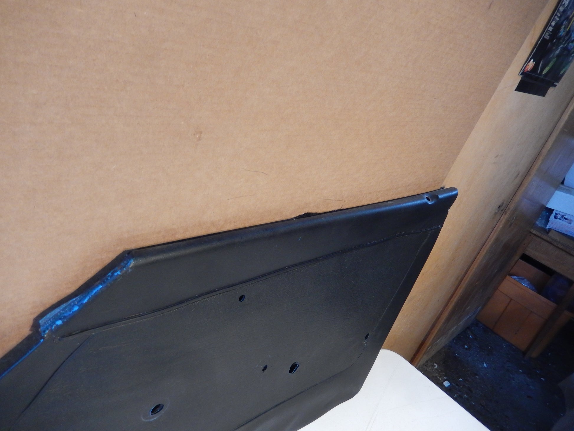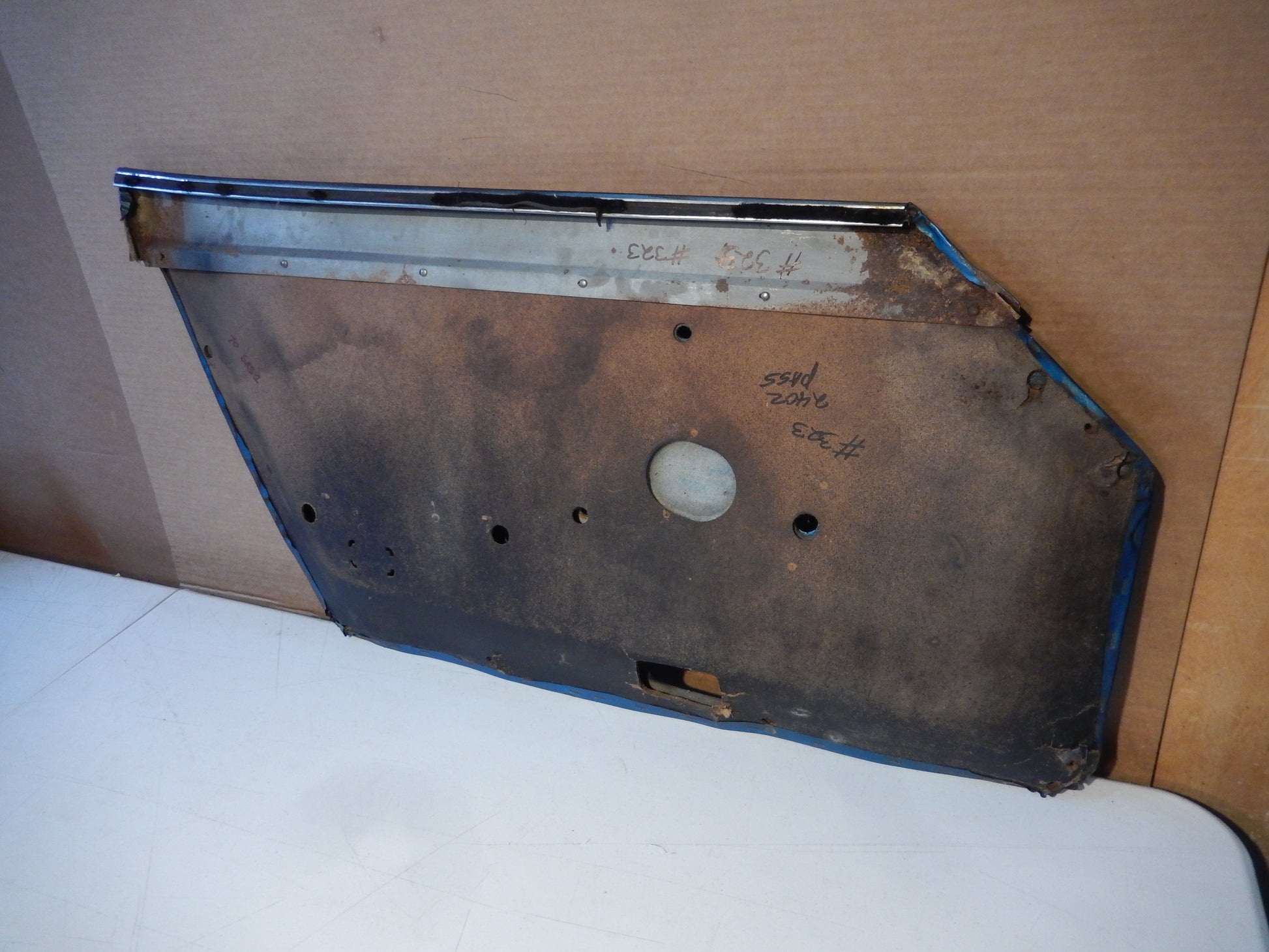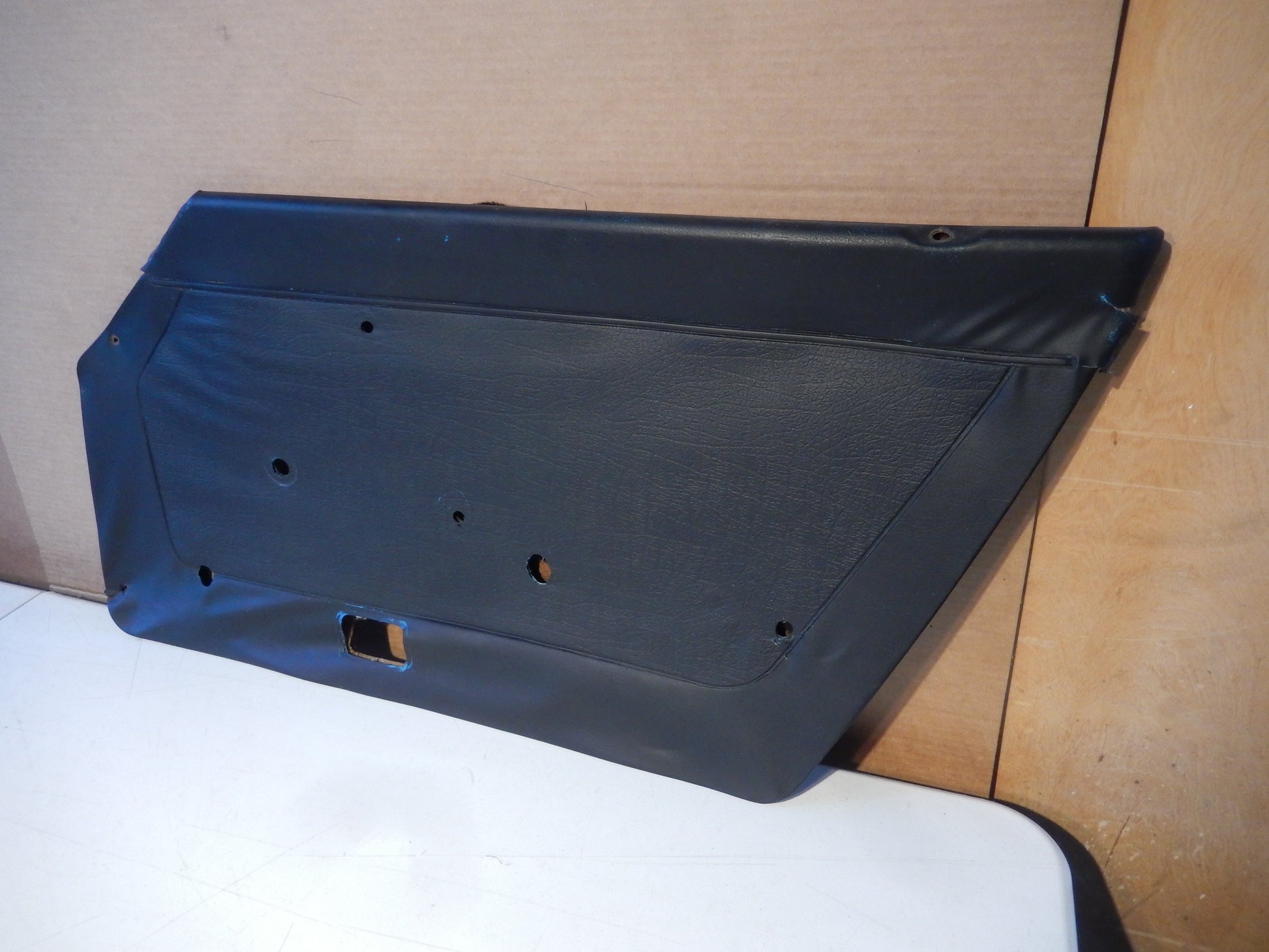 Datsun 240Z Passenger Side Black (originally blue) Interior Door Panel in fairly good condition. There is a quarter size hole down toward the bottom of the panel and one tear on the back shoulder edge. The Backboard is solid but has a few rough mount pin holes and small cracks. With a little careful work, this can be a nice panel. SKU# 323 Guaranteed.