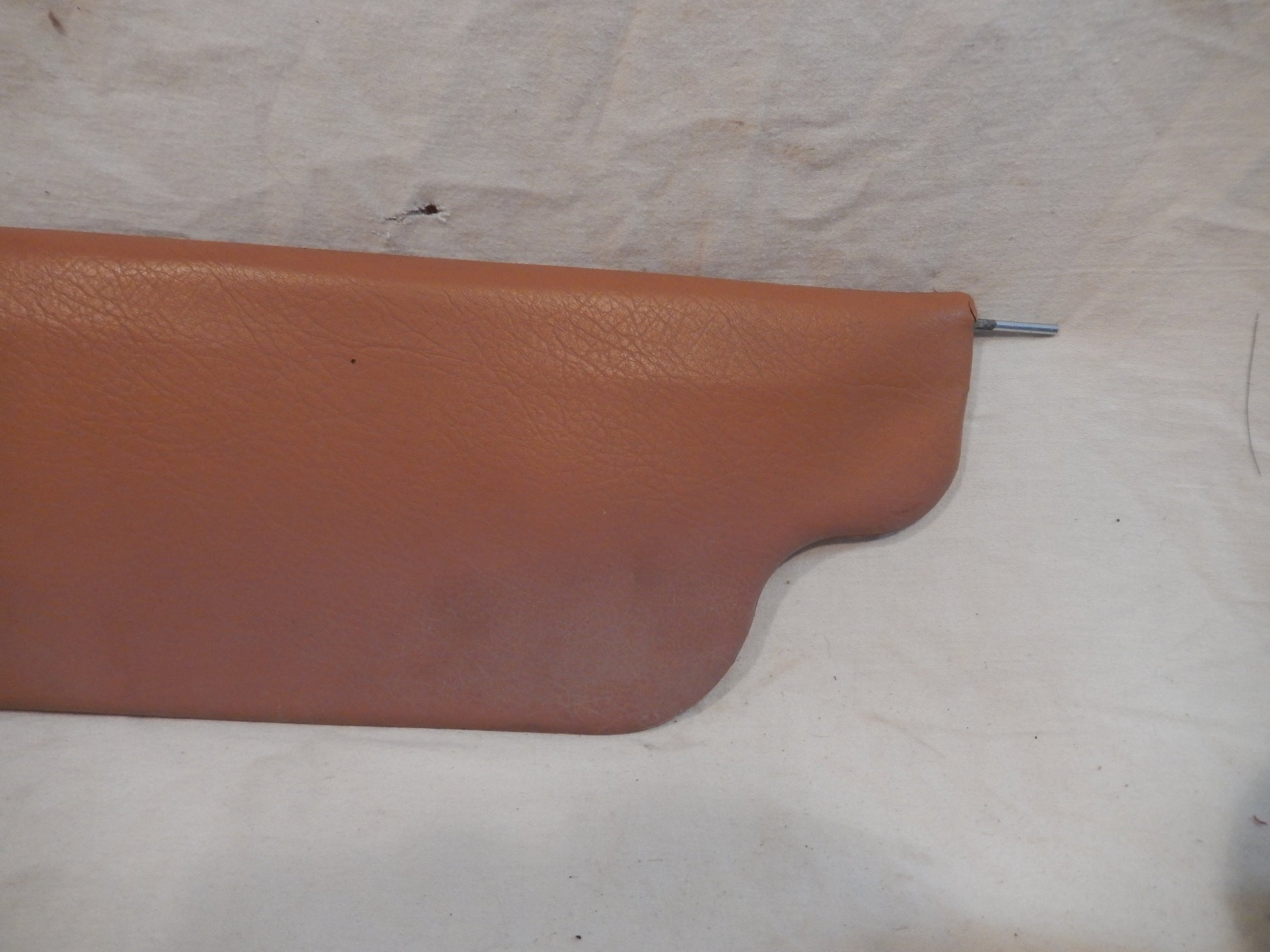 Datsun 240Z Passenger Side Sun Visor in Tan Color. This is a very nice sun visor with nice color and surface condition. Good Rod Tension. Small imperfections. Corner Tear. See Photos. Guaranteed. SKU# 346