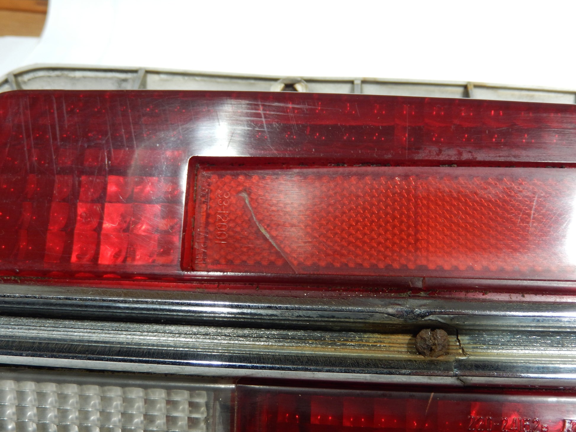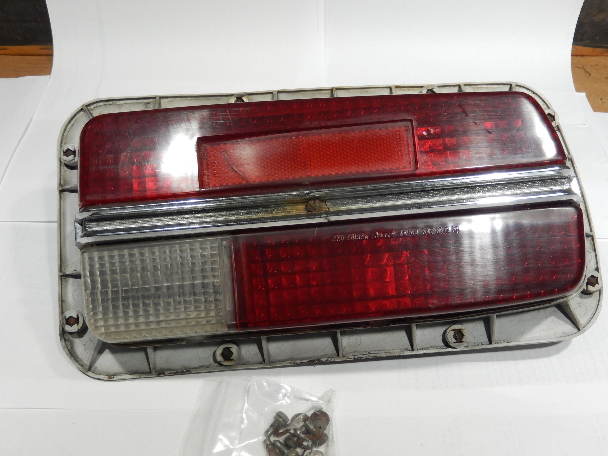 Datsun 240Z Passenger Side Tail Light in Solid / Used Condition. Perfect Structural Condition, no damages to back or light case, Good Clean Solid Light. The Reflector Lens is cracked . The Chrome Trim Strip was secured with an invasive screw. Completely Restorable with some work. Guaranteed.