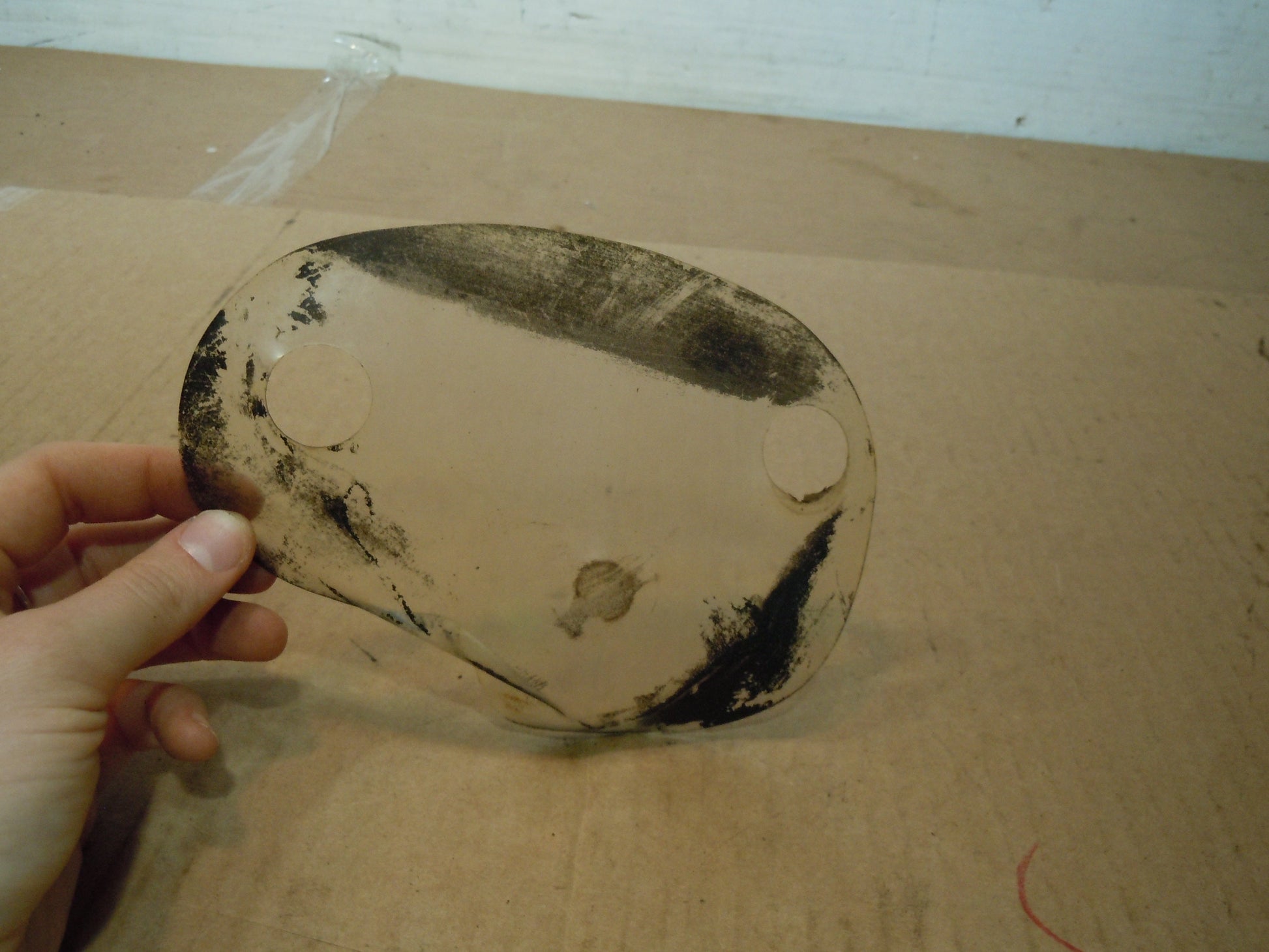 Datsun 240Z Seat Hinge Mount Guard is slightly warped, could use a good cleaning. No Tears. Guaranteed.