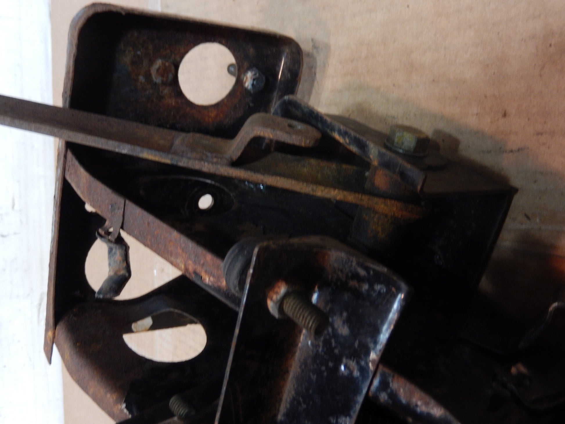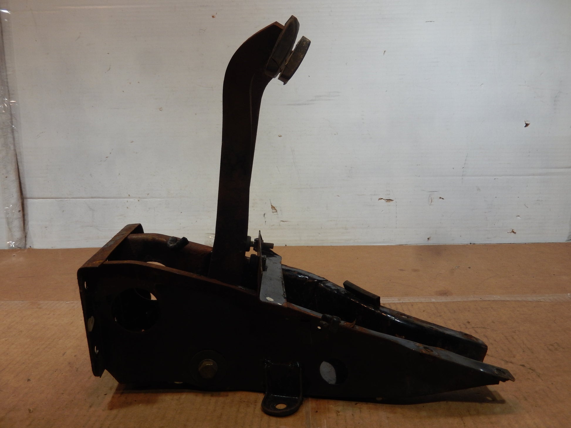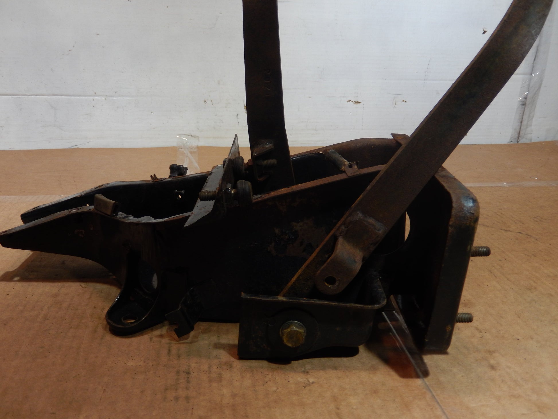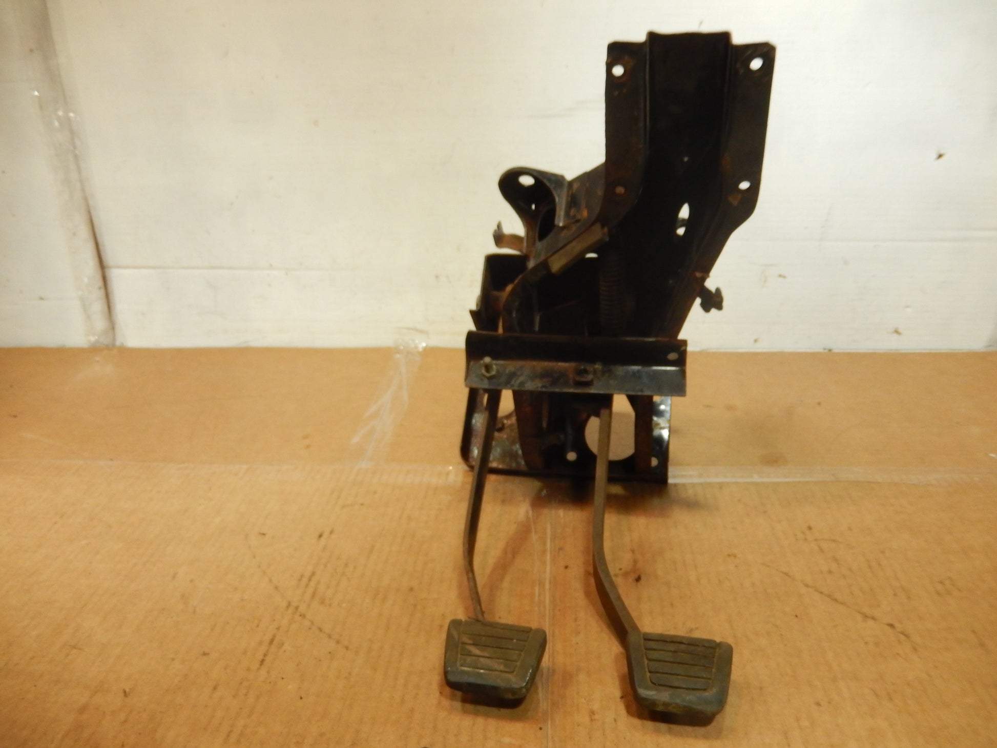 Datsun 240Z Series One Pedal Group in Good, Solid Condition. Some Surface Rust; Needs Cleaning Up, but Good, Solid Condition. Missing one return pedal spring. Pedals move freely. Box is solid. Good Structural Integrity. Comes with fasteners. Guaranteed.