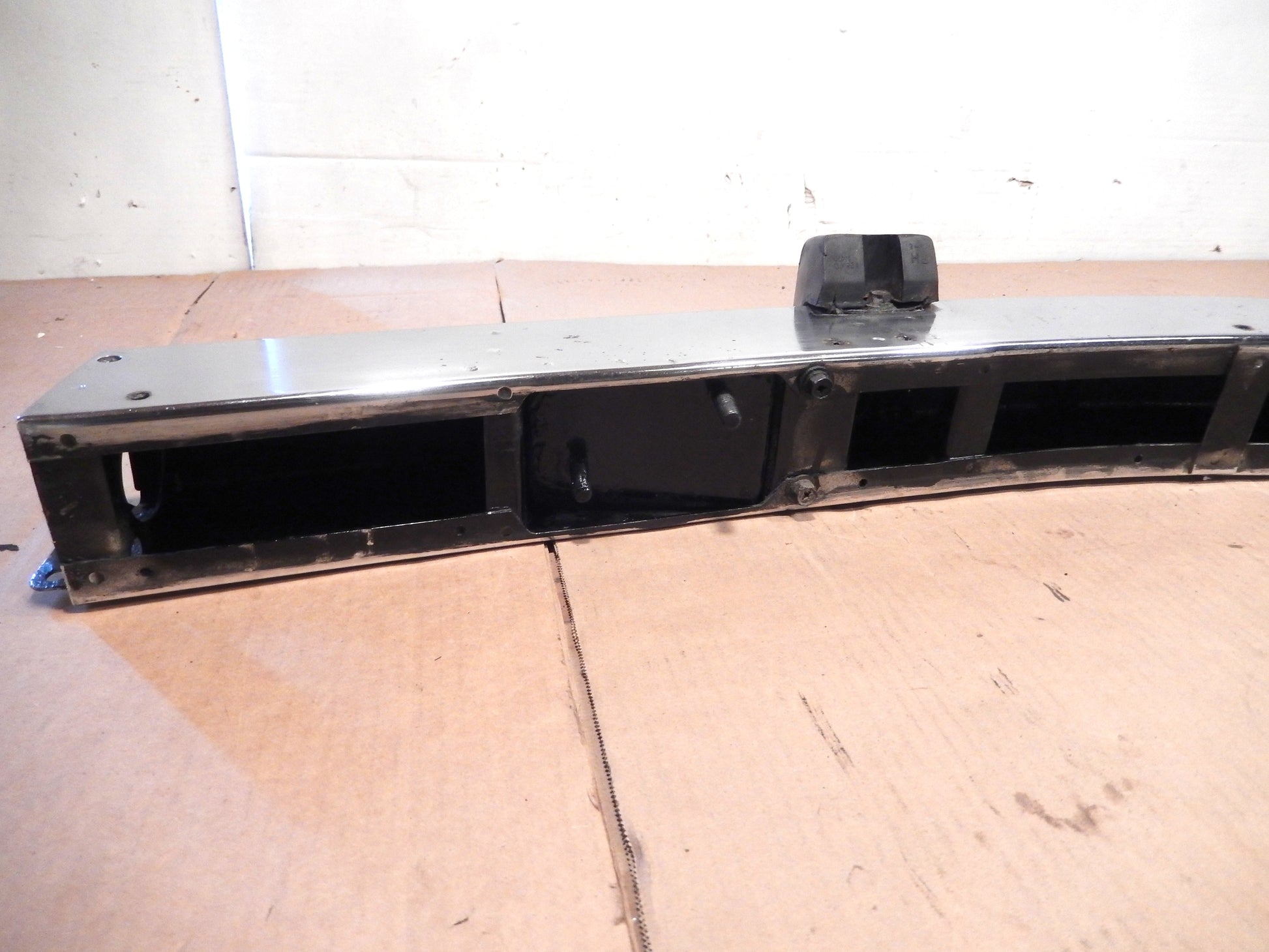Some Imperfections but Very Good Solid Bumper with Excellent Finish. Good Bumper for a "Driver's Car". Rarely See Ones this Solid, Intact, Unbent, and Undented. Fully Intact Bumper Guards in Excellent Condition.