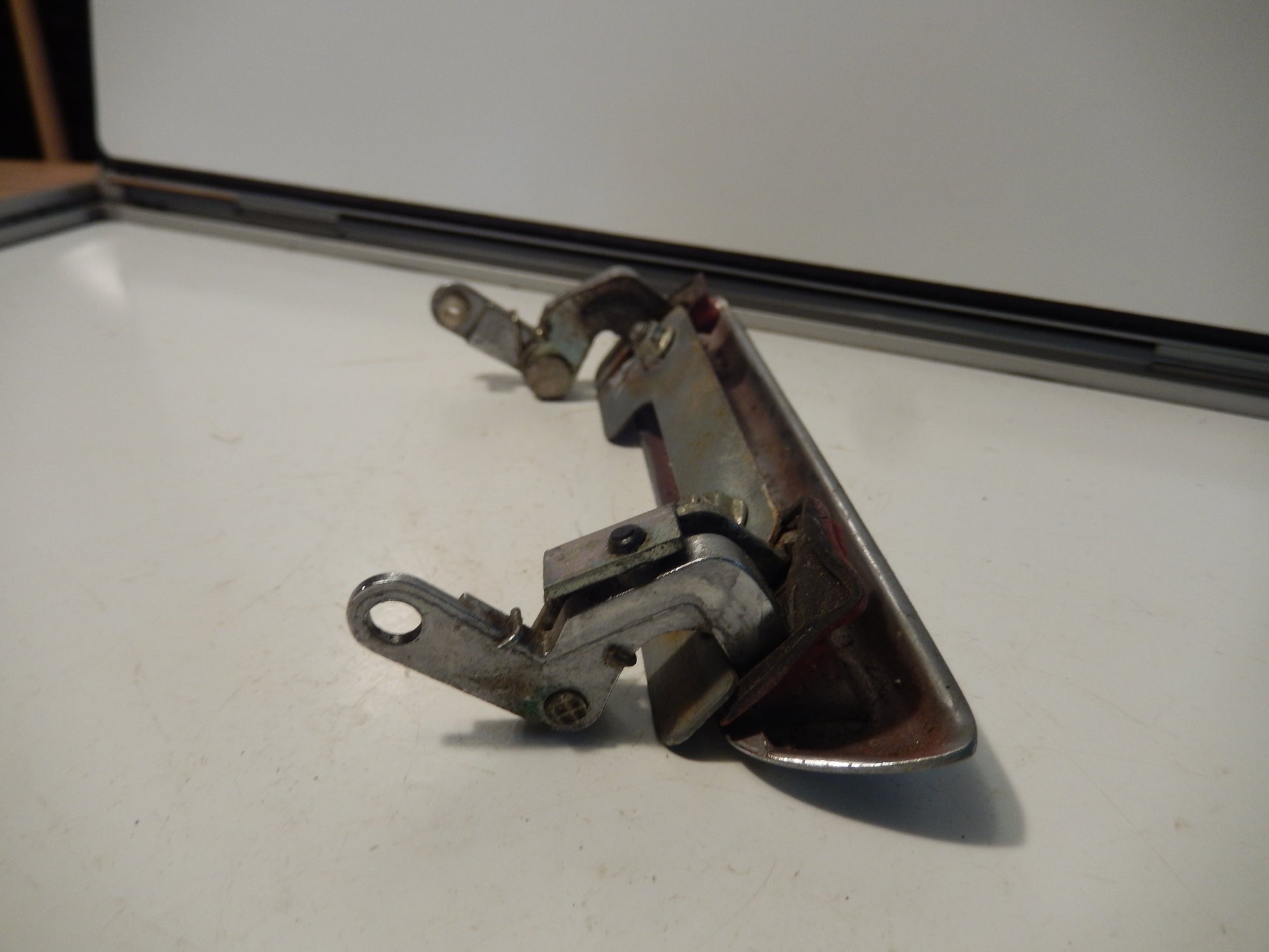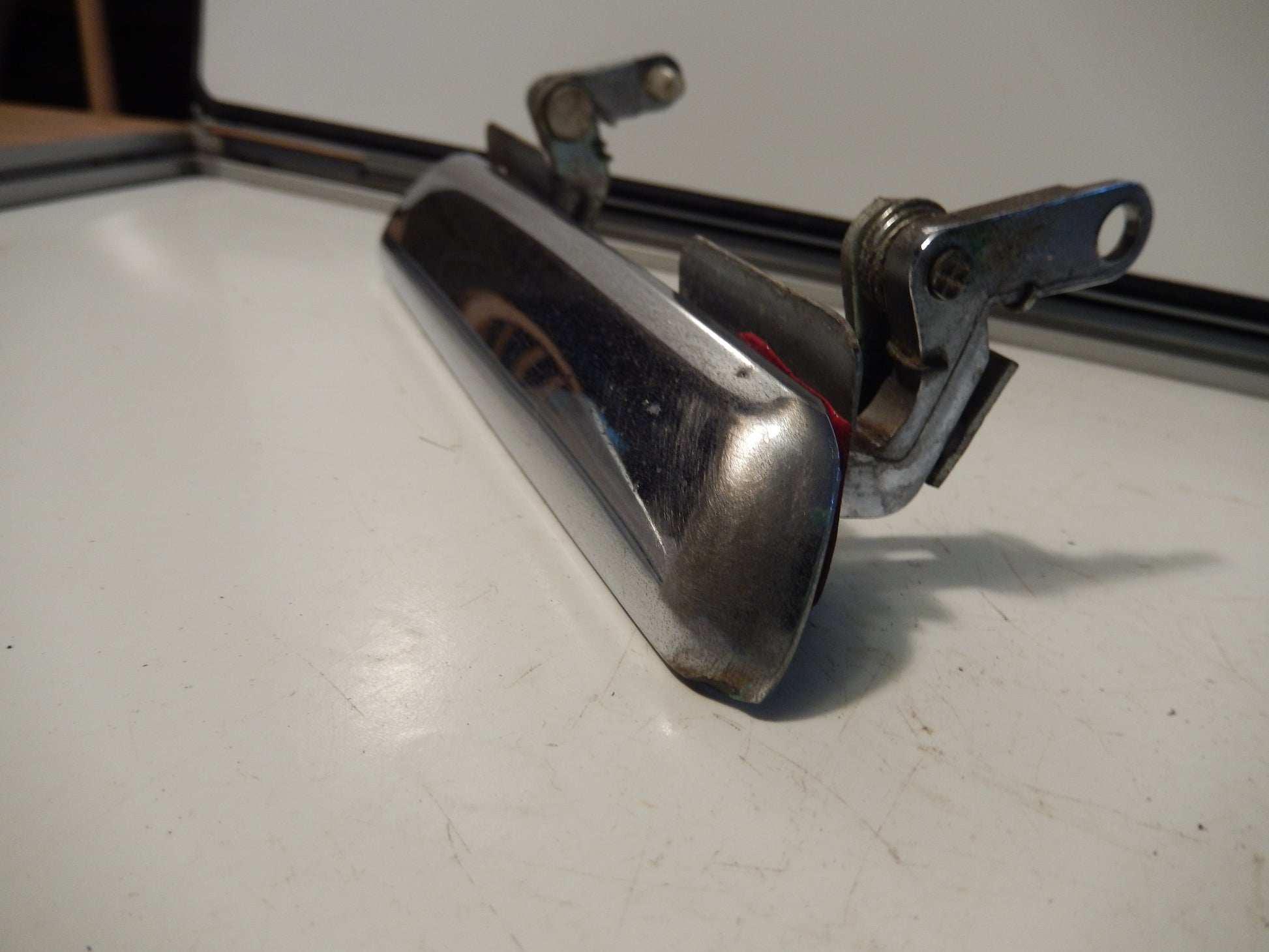 Datsun 280Z OEM Passengers Exterior Door Handle in Good / Used Condition. This handle has a used but nice chrome finish and a smooth working lift mechanism. It comes with the mounting plate and fasteners.