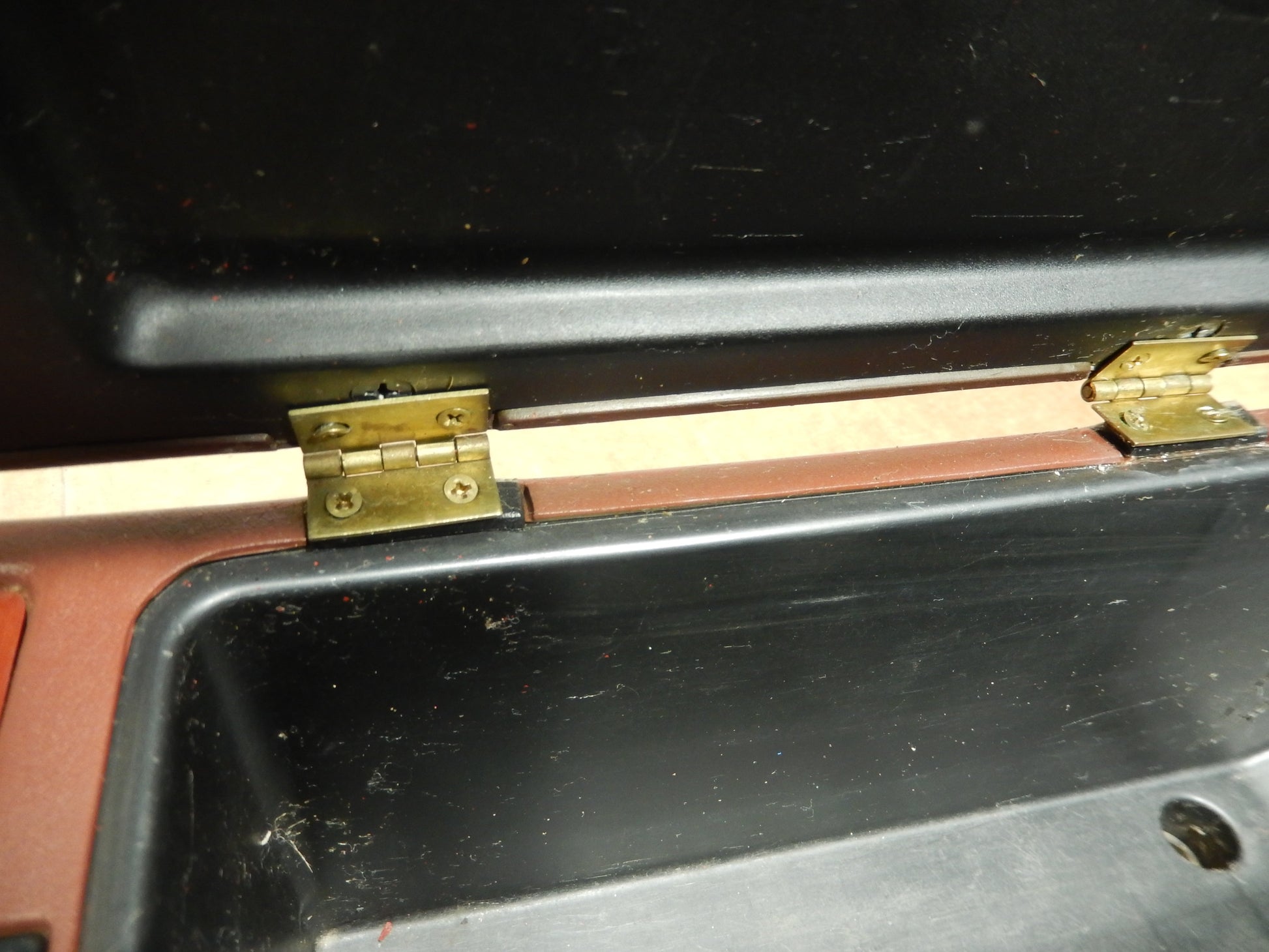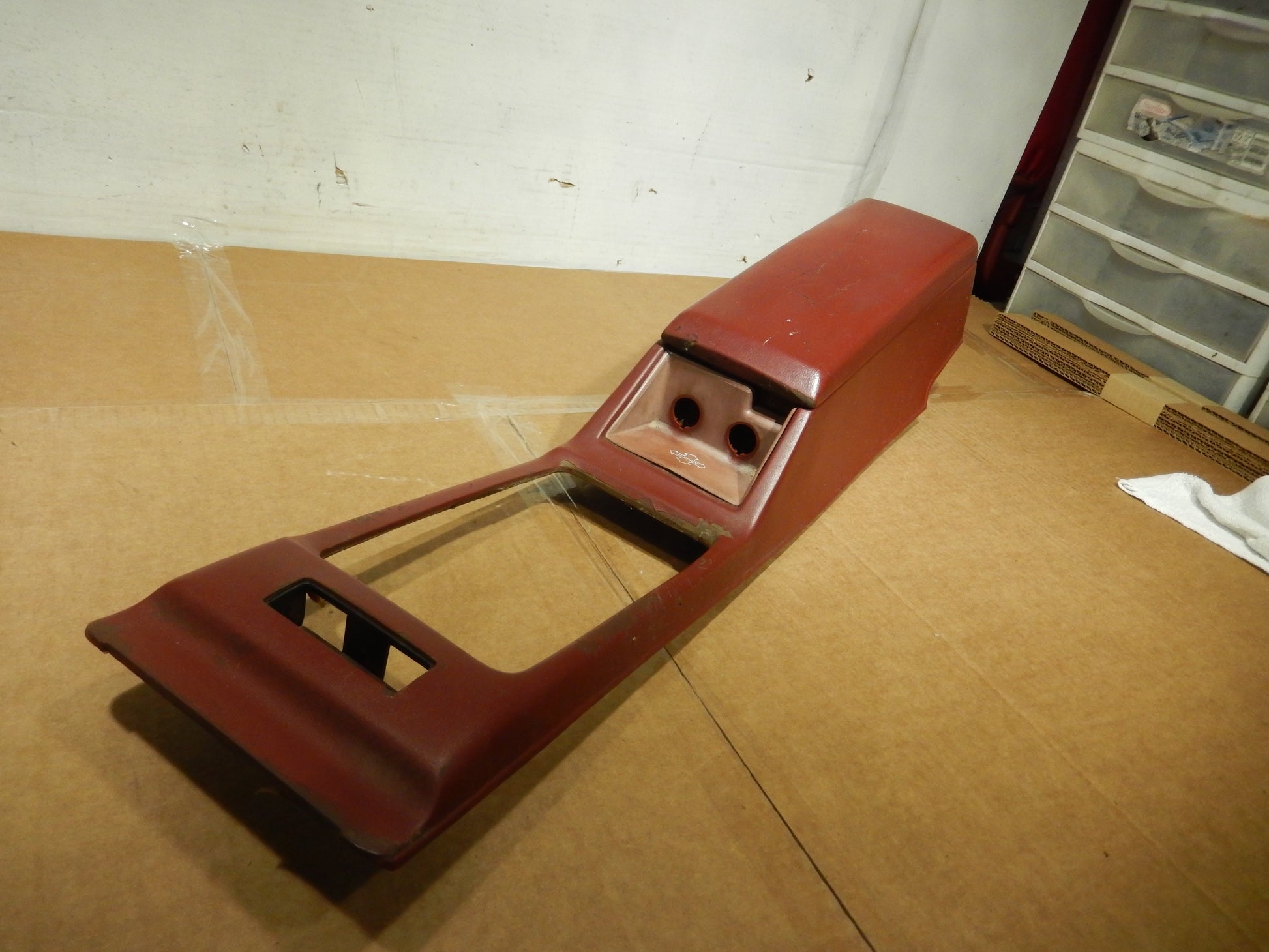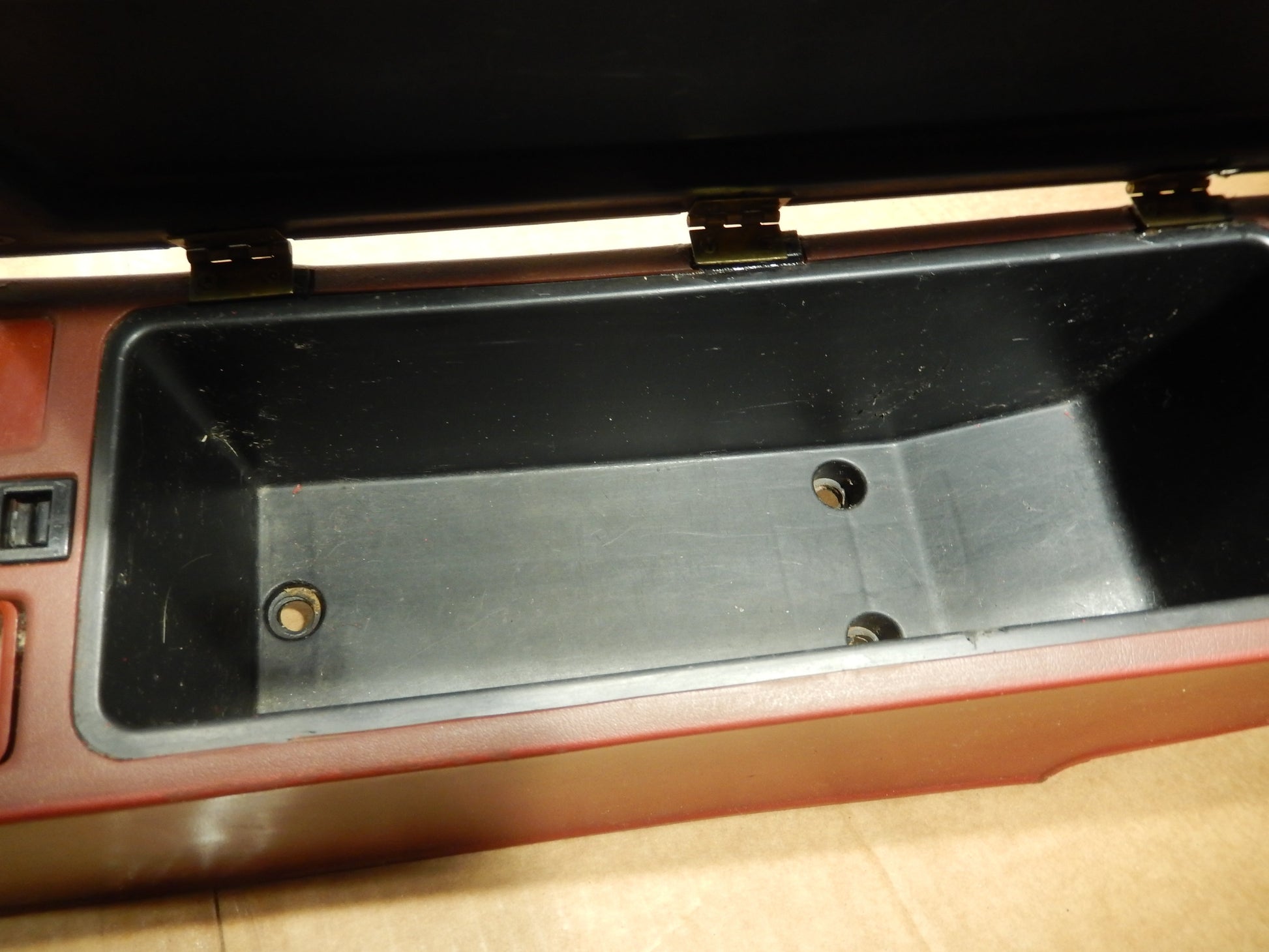 1980 Datsun 280ZX OEM Center Console with Hatch Lid. In original RED color. Some roughness commensurate with age and use. Brand new set of three brass hinges that were professionally installed, which seats the lid perfectly. Mirror switch bezel is 100% intact, as is storage compartment. Rare to find in this color. Minor rough spots here and there; check photographs. No Returns. Overall a nice center console, though not perfect.