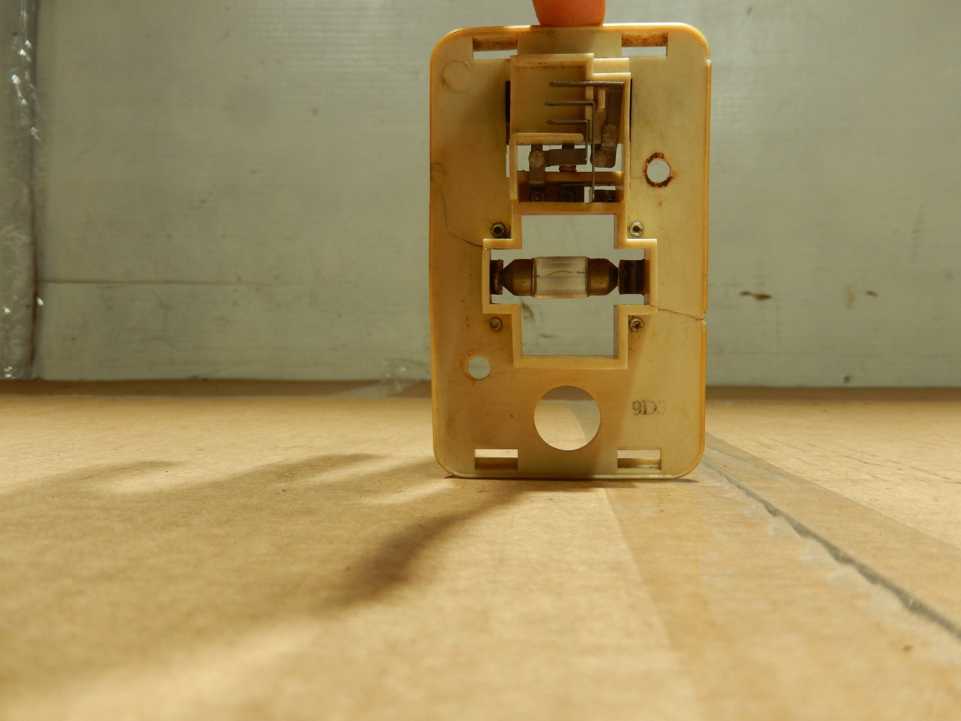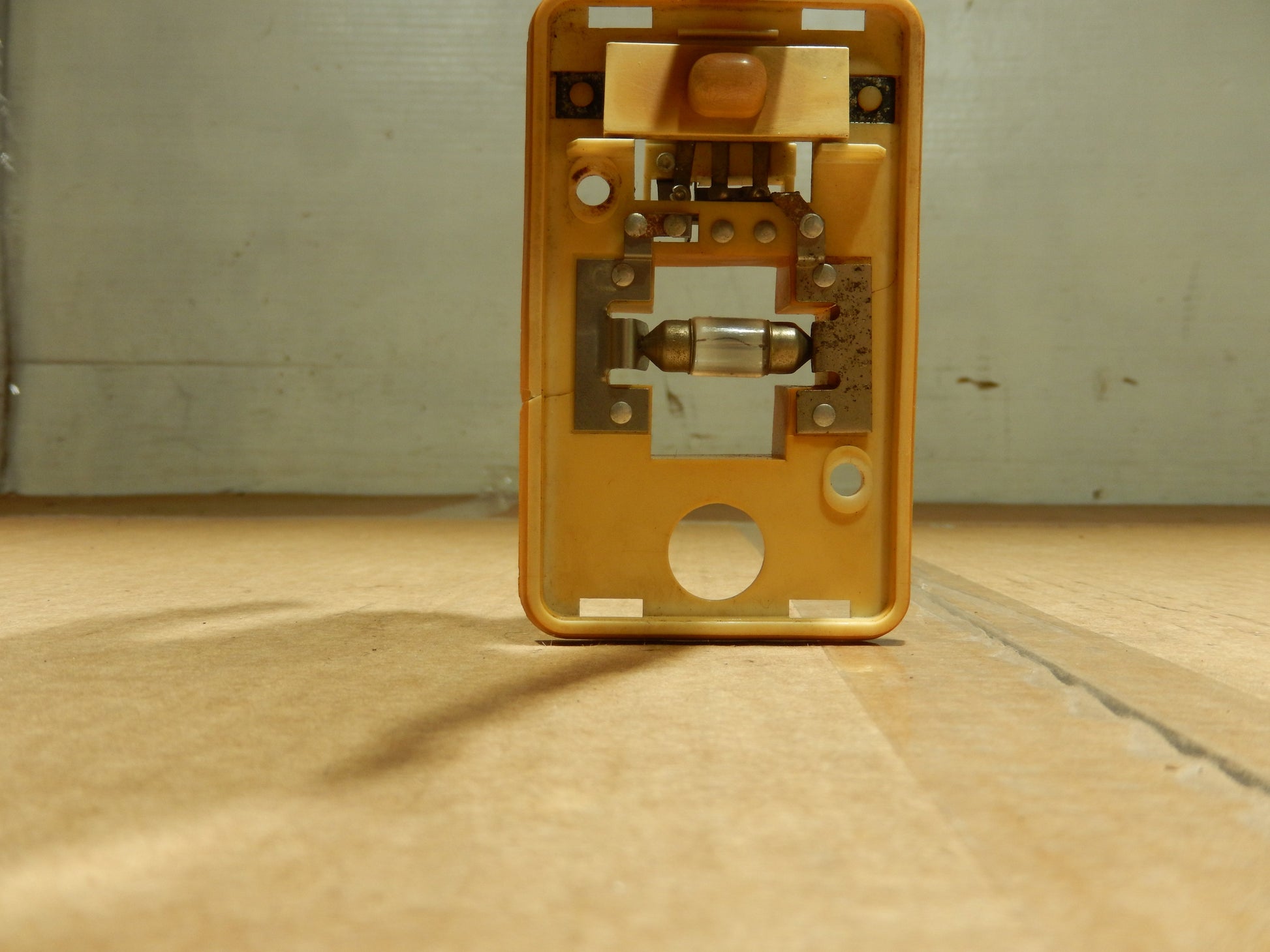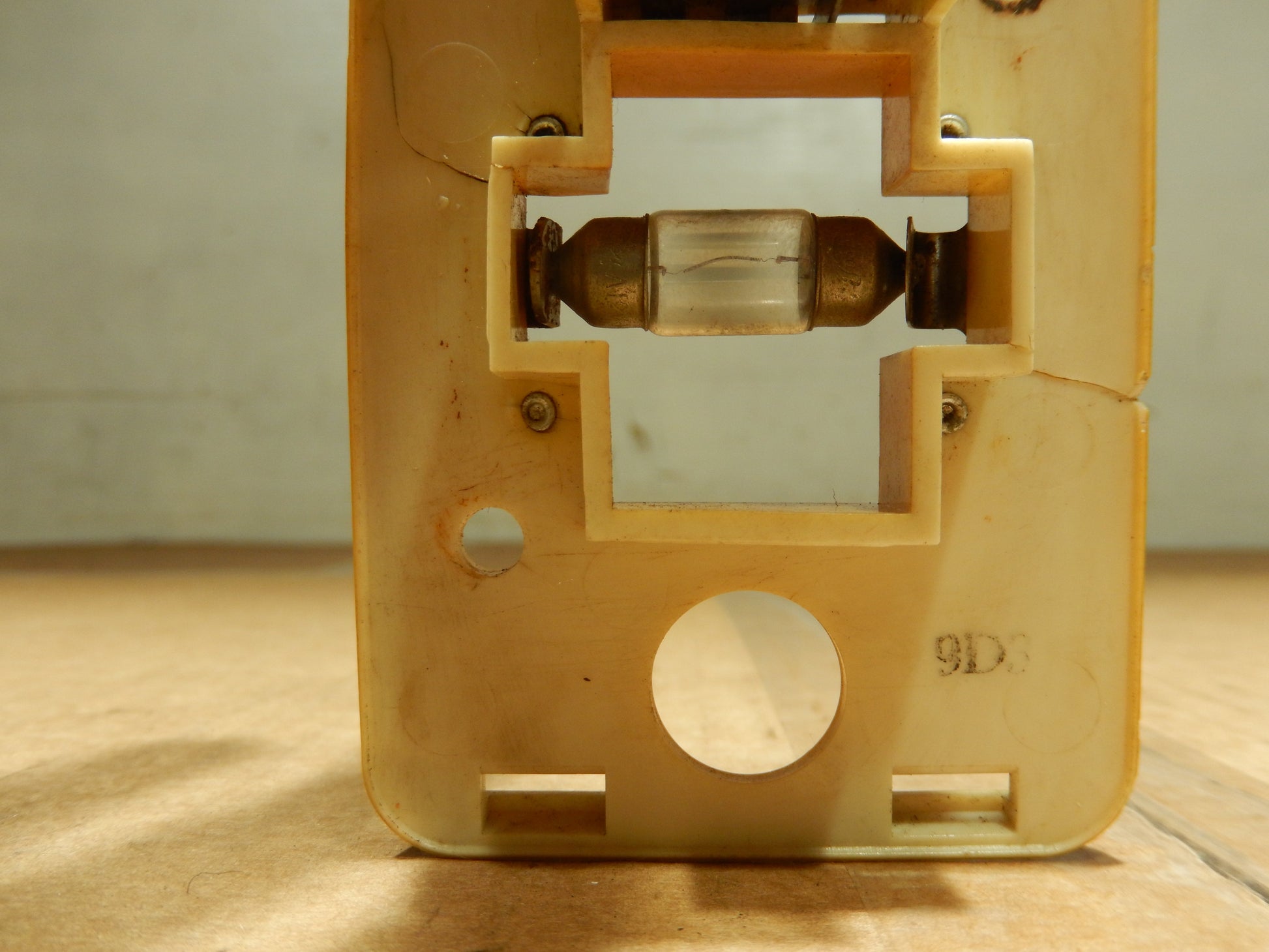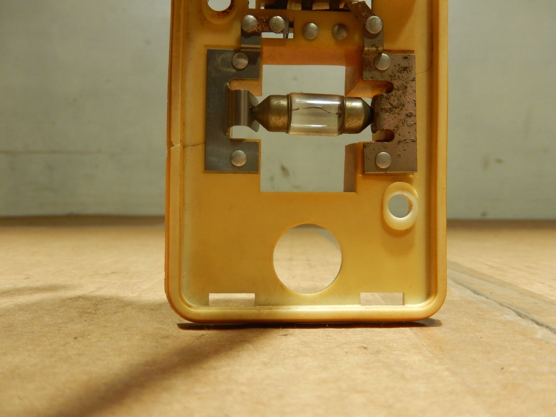 Datsun 280ZX Center Overhead Courtesy Light with fasteners in great condition. Frame (9D3) has two minor cracks (see photos) - otherwise excellent condition. Perfect switch. Opaque lens (part # IKI 9045) has light surface staining, will still diffuse light correctly.