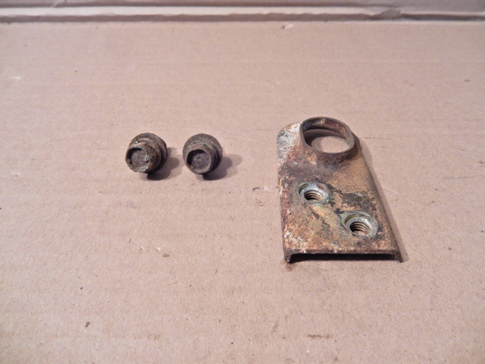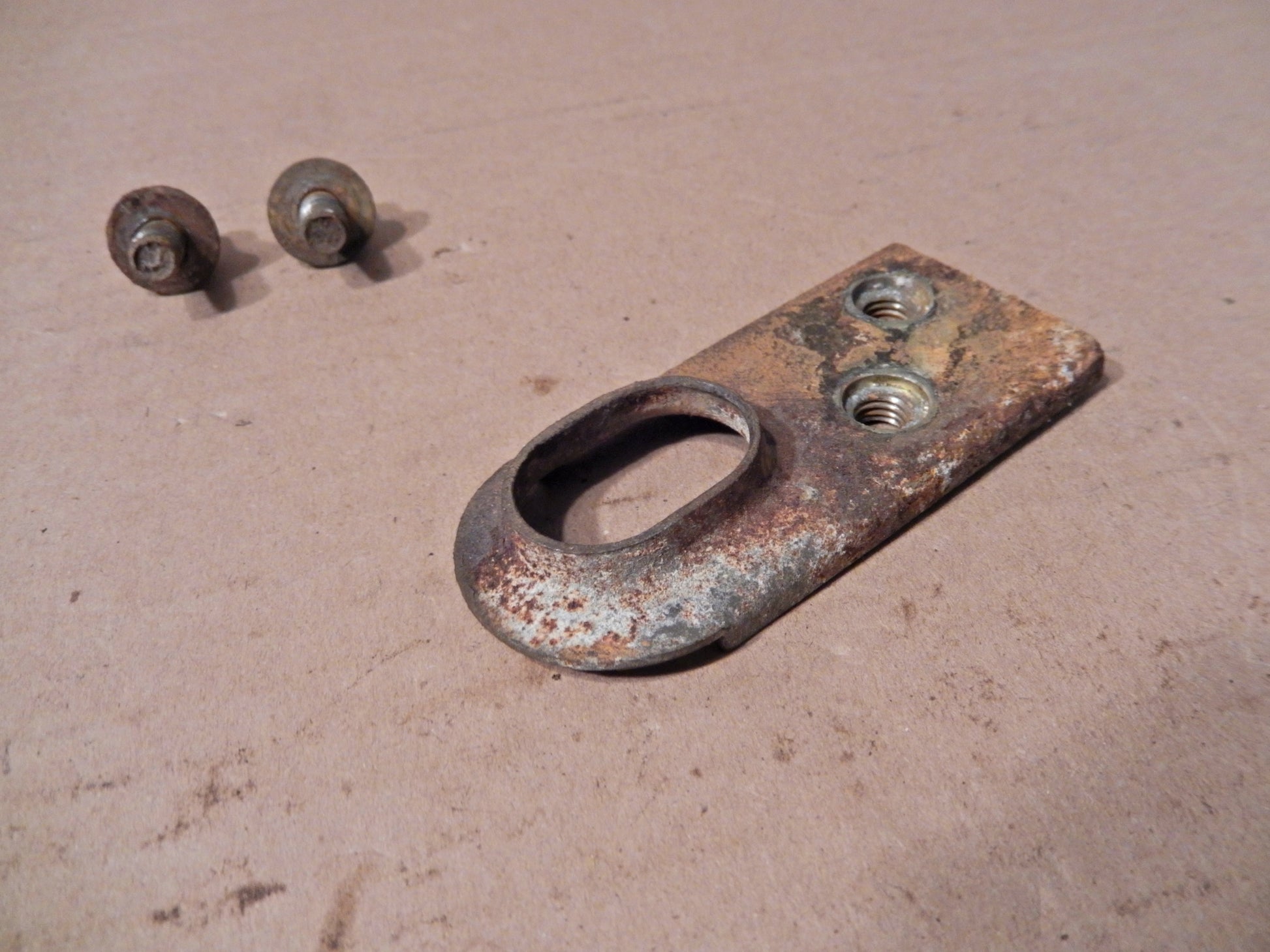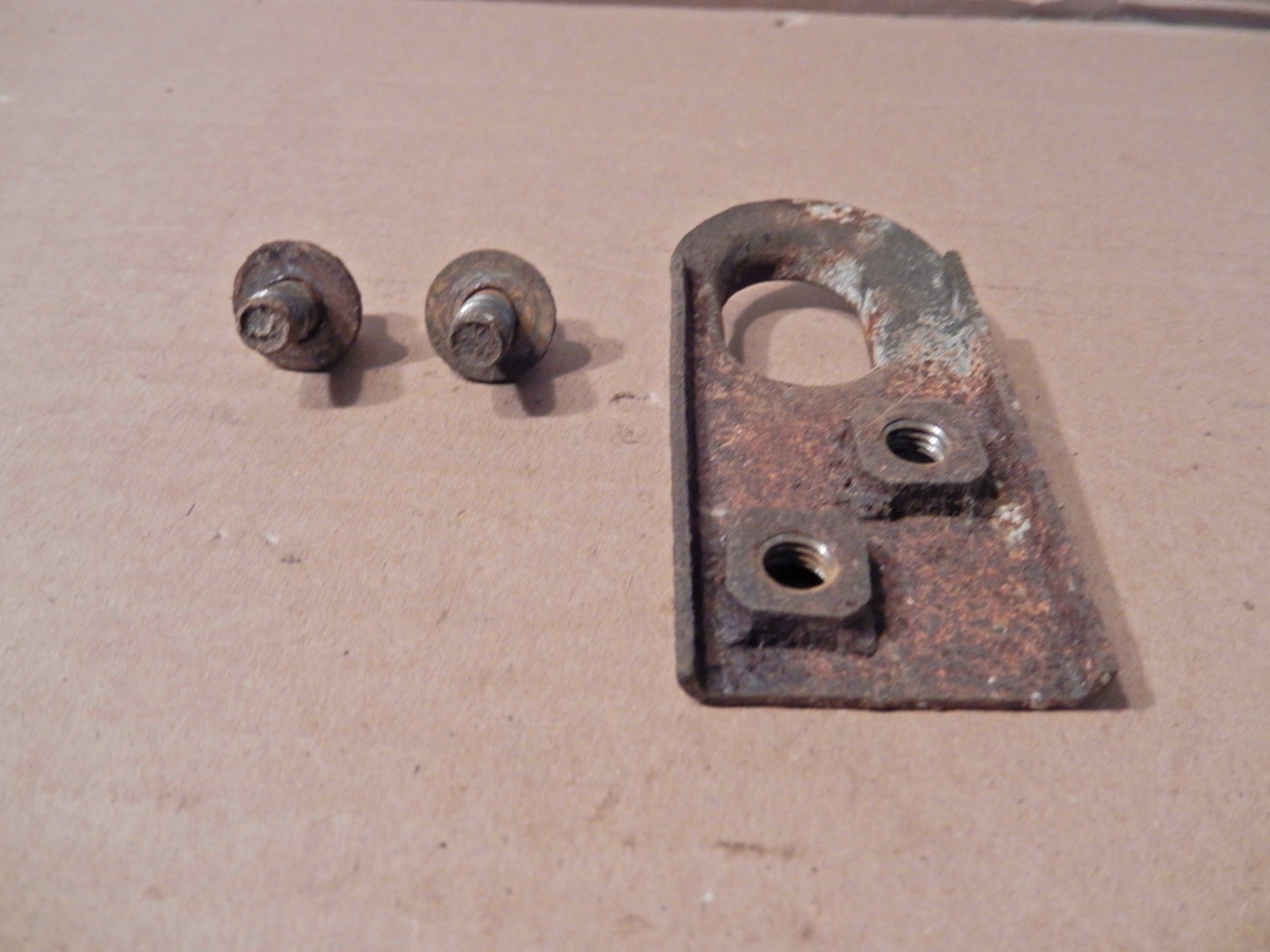 Datsun 280ZX Driver Side Swing Arm Brake Cable Bracket with fasteners in Solid Condition. Some Rust. Needs Light Cleaning. Guaranteed.