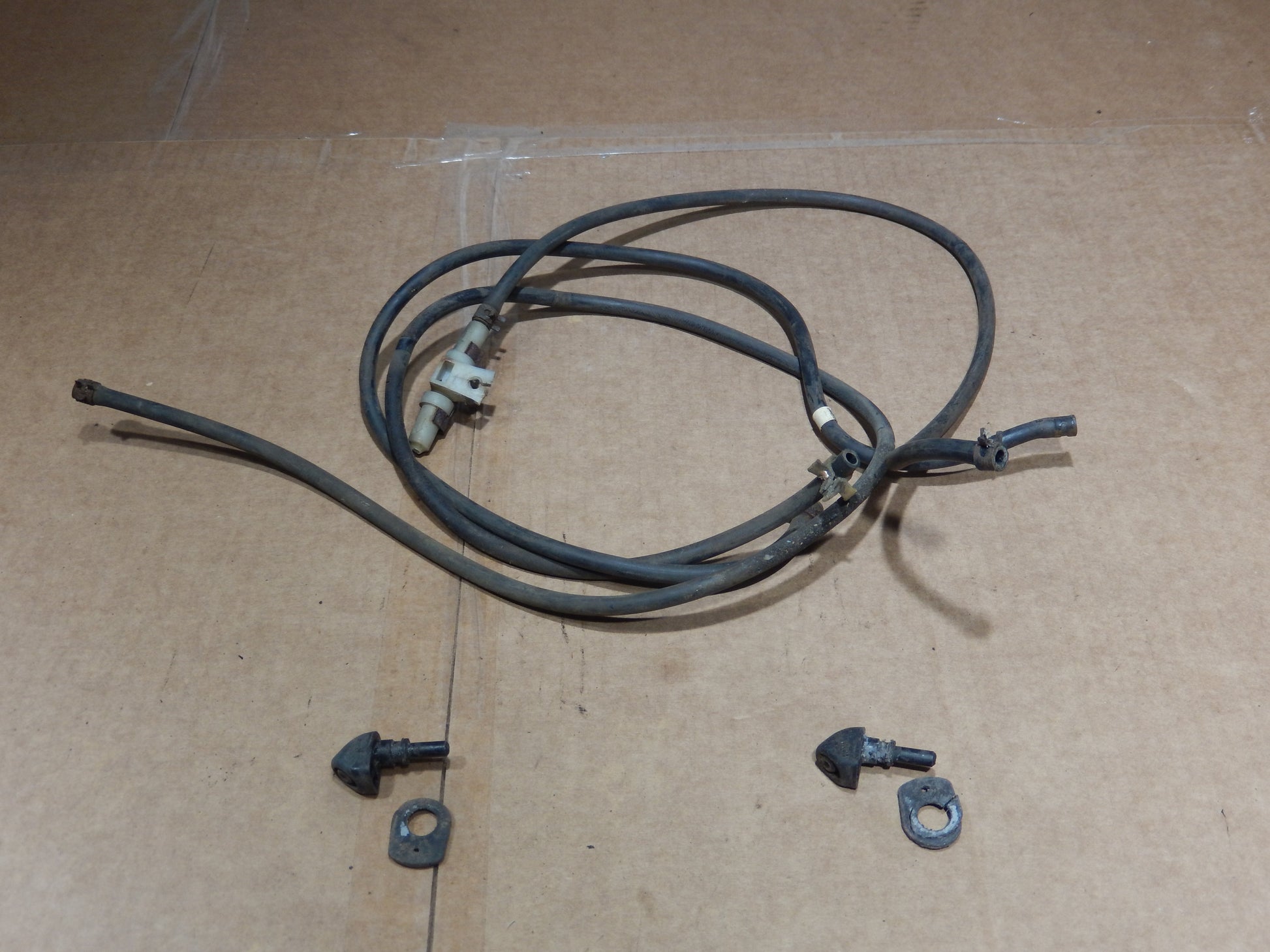 Datsun 280ZX Headlight Washer + Hose Set with Spray Nozzles in Good Overall Condition. Hose juncture is broken - no good. Spray nozzles are complete. Not a perfect system but very restorable; with a little bit of work, it will perform fine.