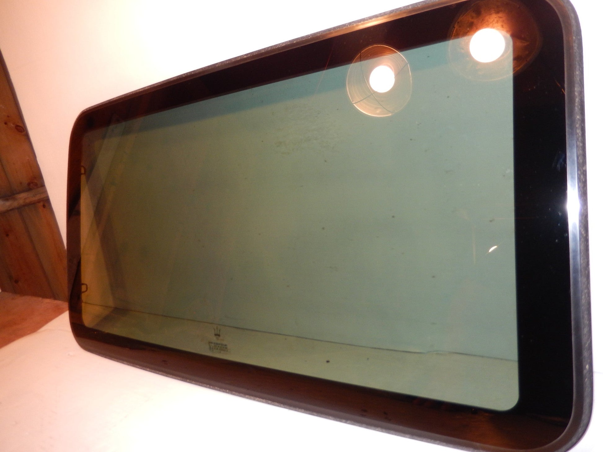 Maserati Quattroporte M-139 OEM , NOS Sun Roof Glass in New , NOS Condition , Perfect ! This Glass Panel is new with a gleaming tinted Glass and a Perfect Frame and Seal , Guaranteed. Marked OEM Maker and Maserati Logo and Script.