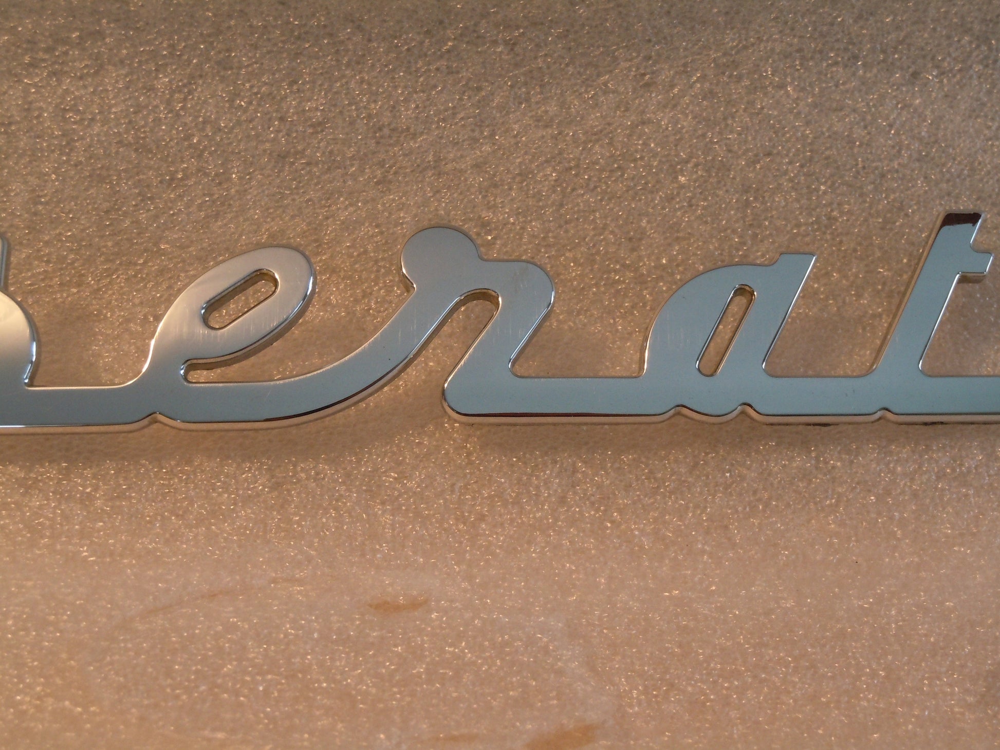 Maserati Quattroporte M-139 05 - 08 Rear " Maserati " Trunk Script in Perfect , Brilliant Condition. Beautiful Surface and Sheen. Guaranteed. SKU # 83