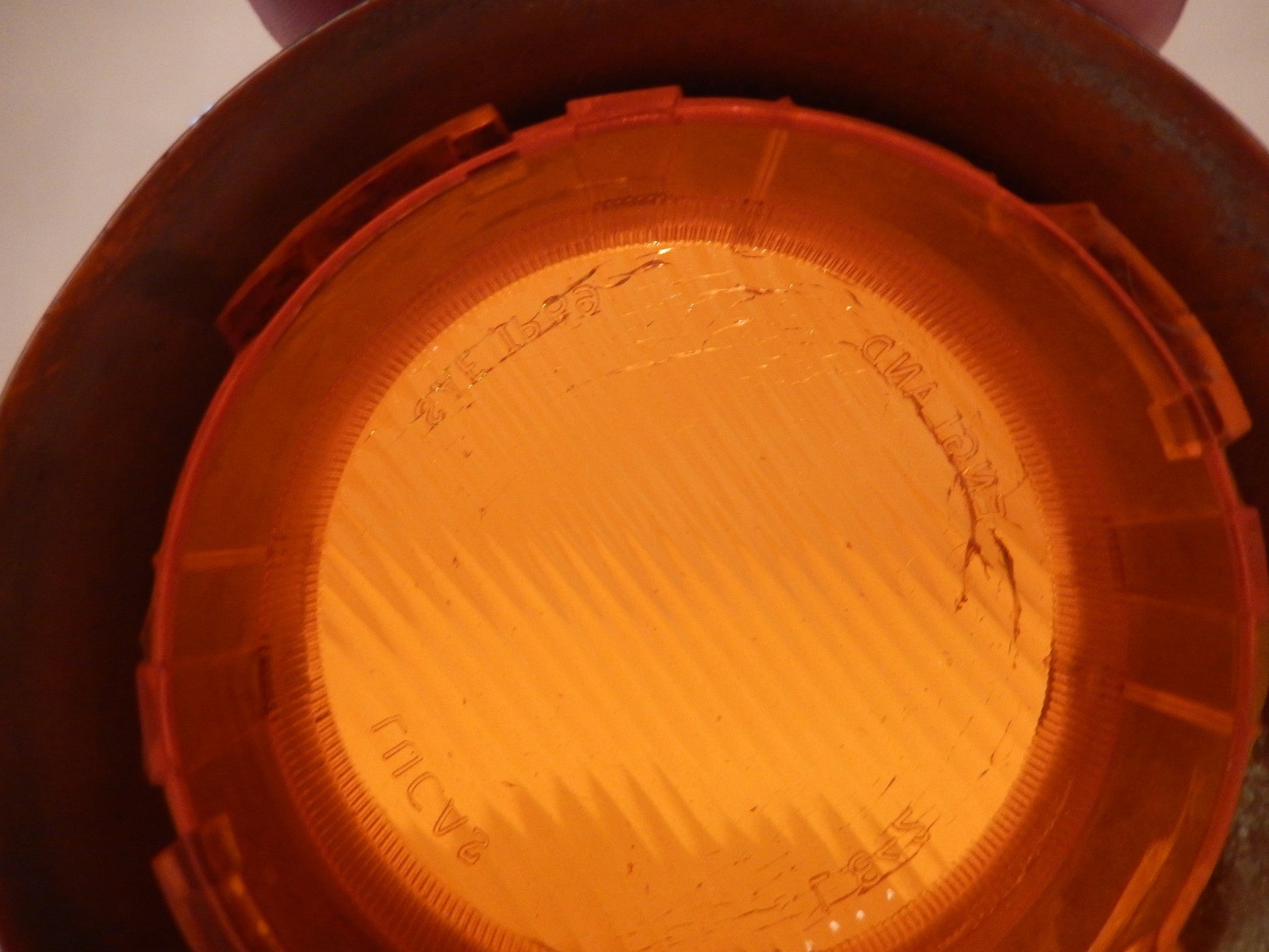 Volvo P1800 Front Signal Lense . Some fine graininess to the trim ring , one ding on ring edge ( pictured ) , very fine hairlines in the lens but a very solid , serviceable unit.