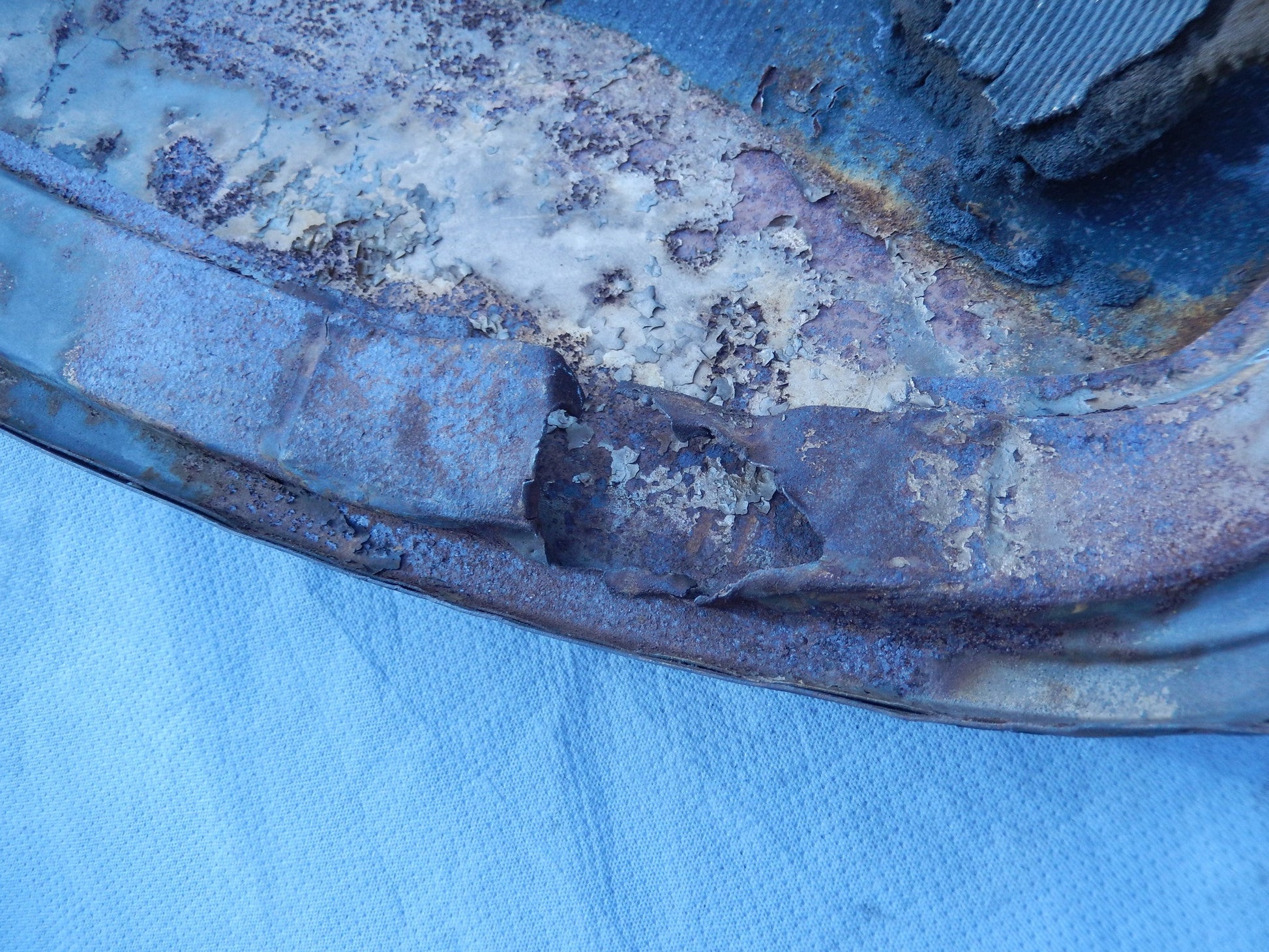 Volvo P1800ES Hood. The Bad News, Both Hinge Mounts Areas are Torn Off and Need to be Rebuilt. The Good News - The Hood is Very Solid, No Rot, Through Rust, Pin Holes, Cracks or Splits. A few rusty areas and some pitting but a Good, Very Solid Hood. All very good edges ! Guaranteed. Freight Charges Apply. SKU # 2 For Reference.