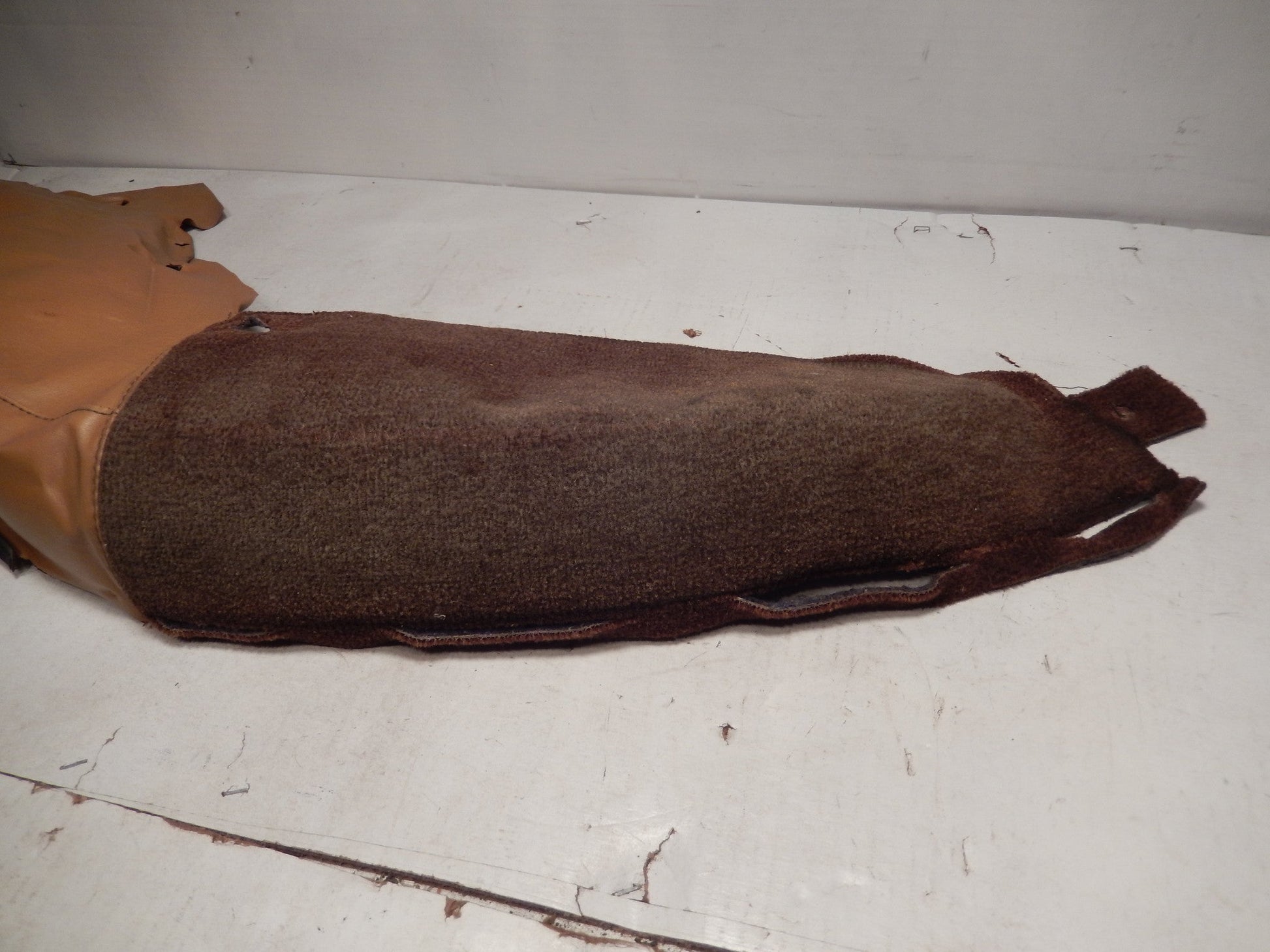 Volvo P1800ES OEM Drivers Side Wheel Well Cover in Very Nice Condition. Both the Tan Material and the Carpet are in Excellent Condition. With a light cleaning the carpet section will have beautiful vintage , original color. Two Mini Cuts on tan material. ( pictured ) Guaranteed.