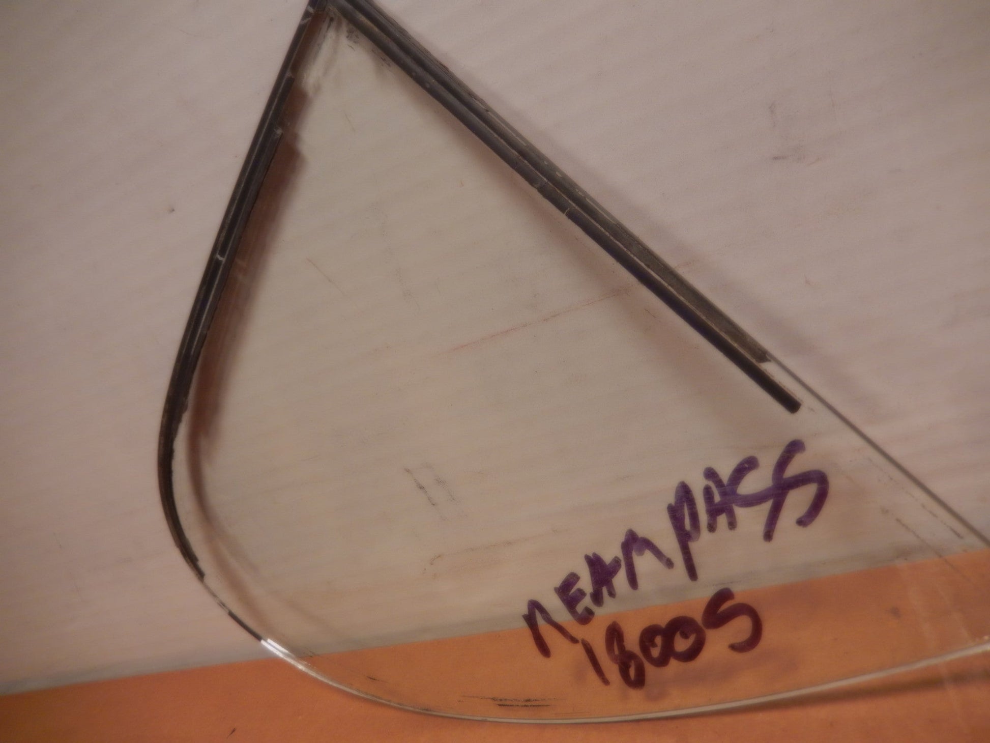 Volvo P1800S OEM Passengers Side Quarter Glass in Good / Used Condition. This Passengers Side Quarter Glass has excellent clarity, no cracks, hairlines or stars. It does have a few very minor scratches and imperfections but is quite serviceable. Guaranteed